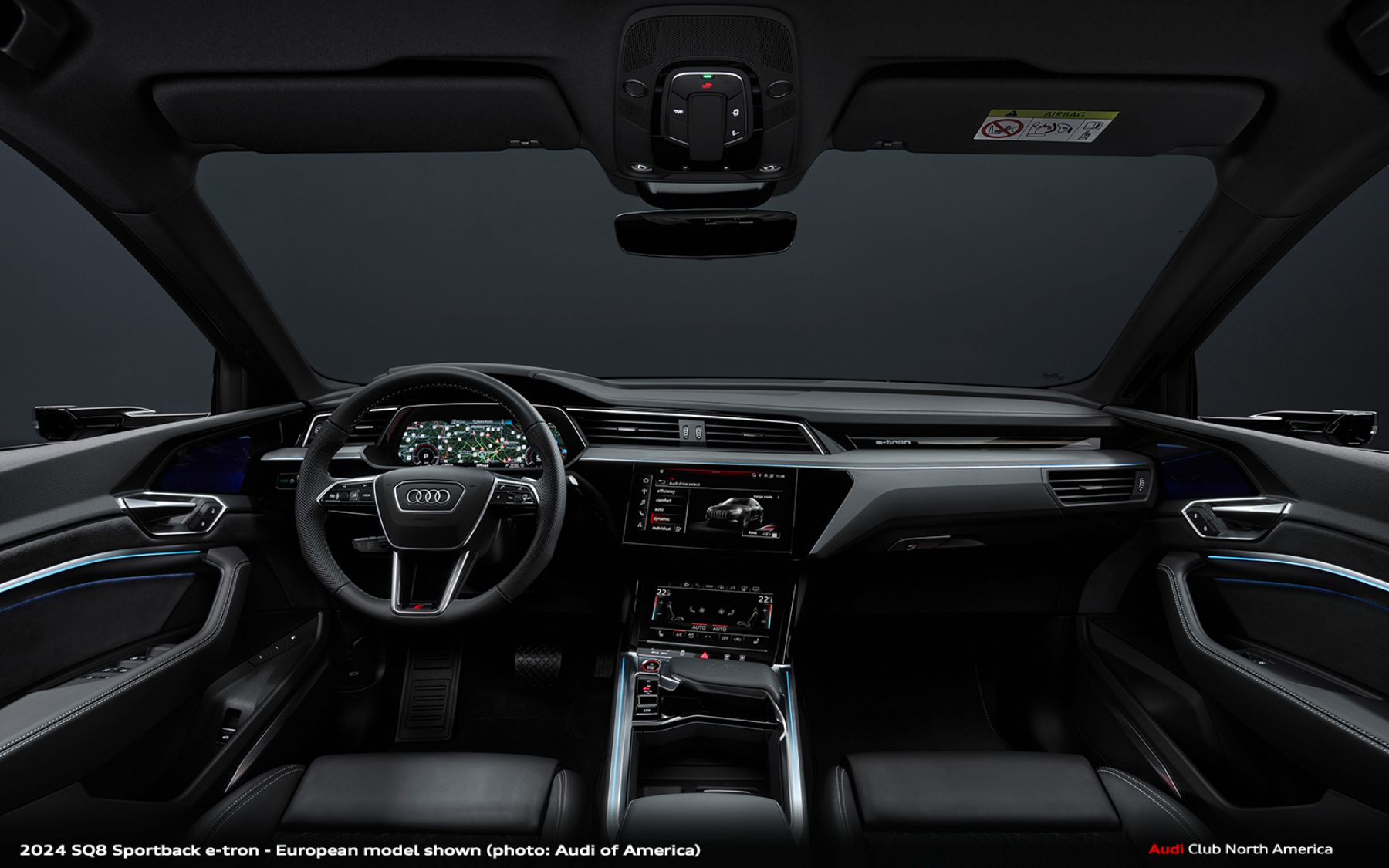 As in the Q8 e-tron, the SQ8 e-tron offers standard four-zone automatic climate control with a heat pump and comfort pre-conditioning.