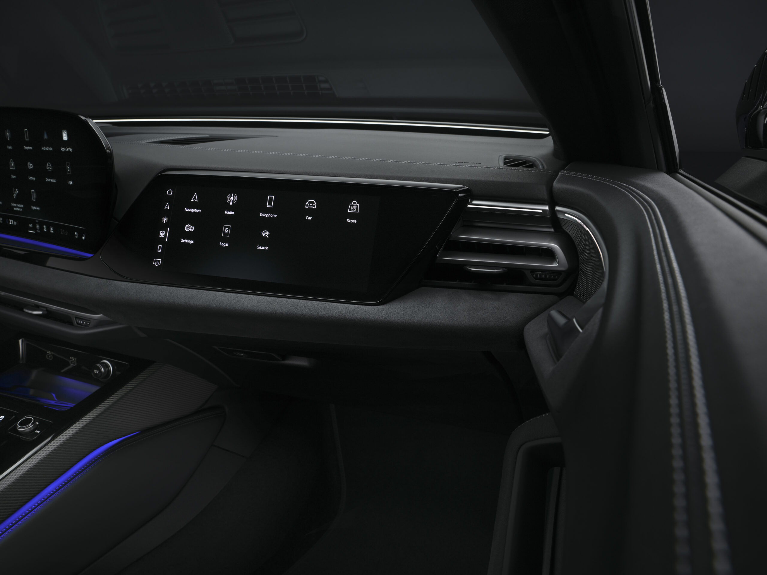 The new operating concept of increased interaction with the vehicle is enabled by the new E³ 1.2 digital electronic architecture, with the goal of seamlessly integrating the A5 into owners’ digital ecosystems via a personal connectivity experience. Key to this is the slim, free-standing Digital Stage of the Audi MMI panoramic display, which uses OLED technology for an elegantly curved design. Consisting of the 11.9-inch Audi virtual cockpit and 14.5-inch MMI center touch display, the Digital Stage can be complemented with the optional 10.9-inch MMI front-passenger display, which integrates seamlessly into the dashboard design. Added to this is the optional dynamic interaction light (IAL), an LED strip running the width of the vehicle across the top of the dashboard to support the car’s interaction with its occupants. The IAL provides visual cues to help confirm functions such as lock/unlock, or to augment virtual cockpit messages such as turn-signal operation.