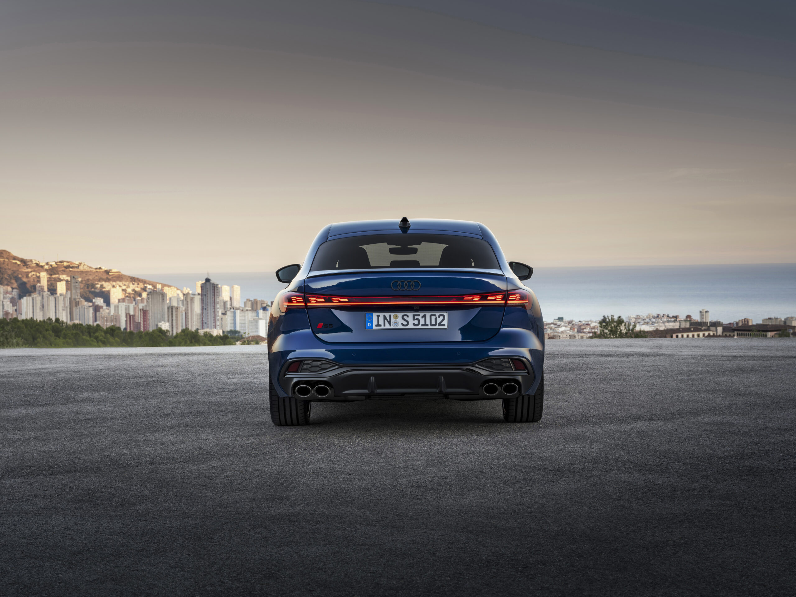 The fender blisters emanating from the front and rear shoulders are reminiscent of the Audi Ur-Quattro – a core element of Audi design DNA – and the door handles sit flush with the body in a more aerodynamic design. The rear of the vehicle combines emotional design and intelligent technology, with the offset depth of the light strip giving the new A5 additional presence. Other design highlights include the darkened diffuser integrated into the bumper, and premium functional rectangular exhaust tips.