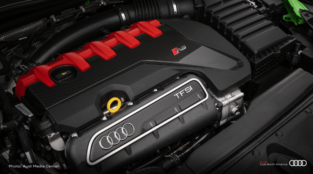 A big part of what makes this car so special in a world full of high-performance cars is that lovely five-cylinder engine under the hood. Quick, name another car with this engine. Time is up! It gives you 394 horsepower and 369 pound-feet of torque. That might not sound like much in the world of 1,250 horsepower Corvettes. But it is plenty for performance you can actually use on the street.