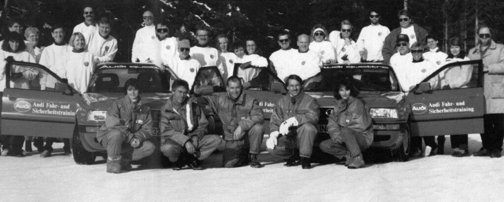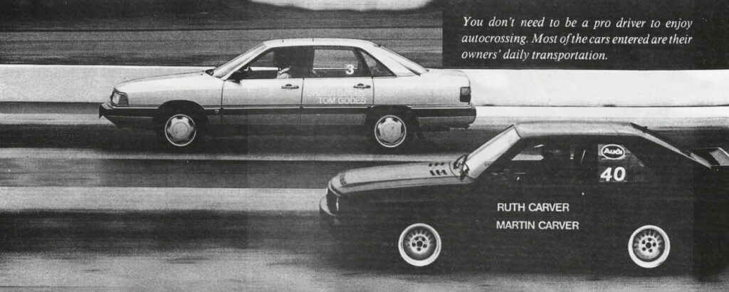 From the start, a sense of family has been central to the Audi Club experience. The inaugural Quattro Club Safety Seminar Autocross was held at the Beddor’s “home track,” Brainerd International Raceway, in 1986. By the fifth event in 1991, Audi of America had invited journalists to test their press cars against Marilyn Beddor’s Audi V8 (D1). Hurley Haywood also contributed by advising the growing team of volunteer instructors.
