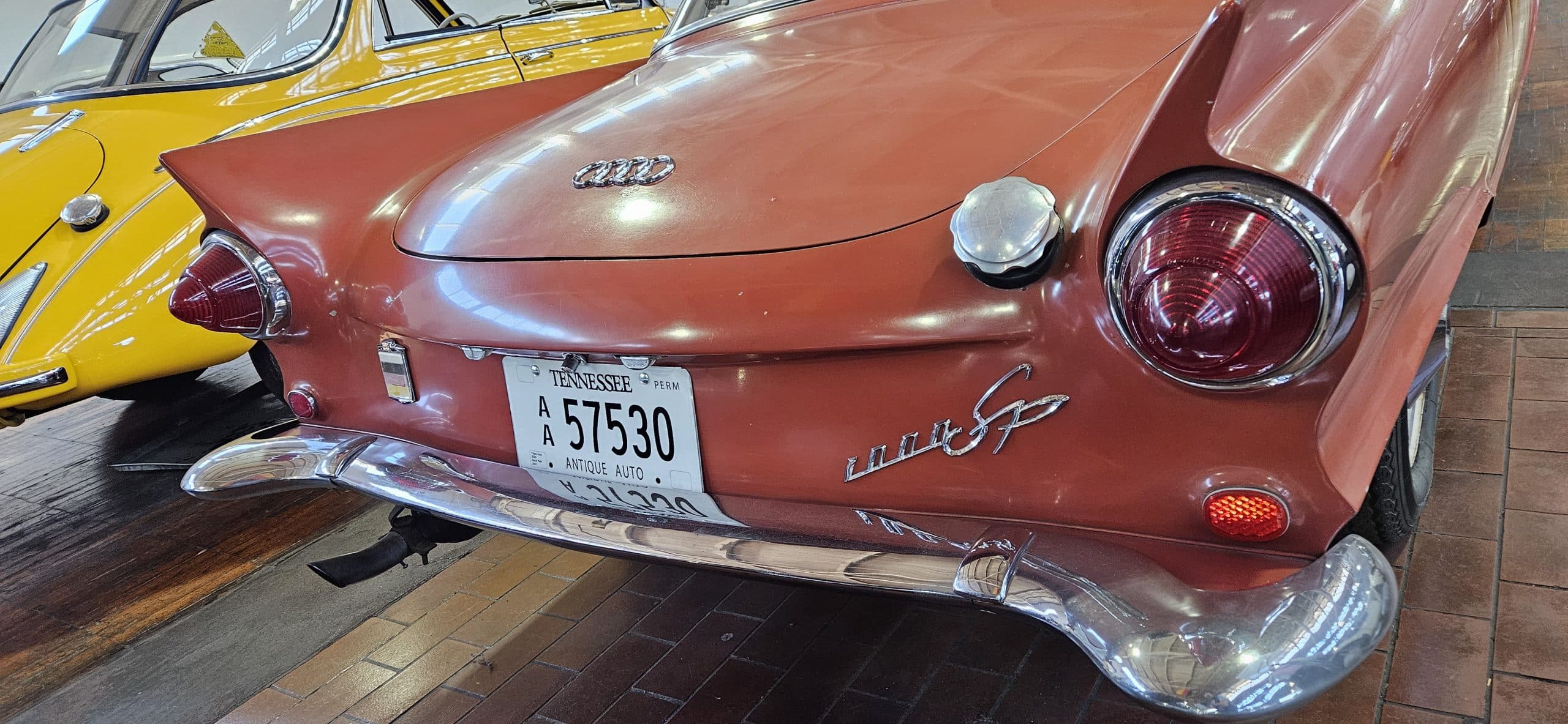 About 90 minutes into the second day’s drive we stopped at the Lane Motor Museum. It was easy to find off the interstate and the exit is just before where I-40 merges with I-24 so we avoided a big traffic back-up. The museum’s website says it’s “Home to the largest European automotive collection in the U.S.” and their tagline is “Unique Cars From A-Z”. I have to agree; there’s entire herd of unicorns there. If it’s small, quirky, or one-of-a-kind, it now lives at Lane.