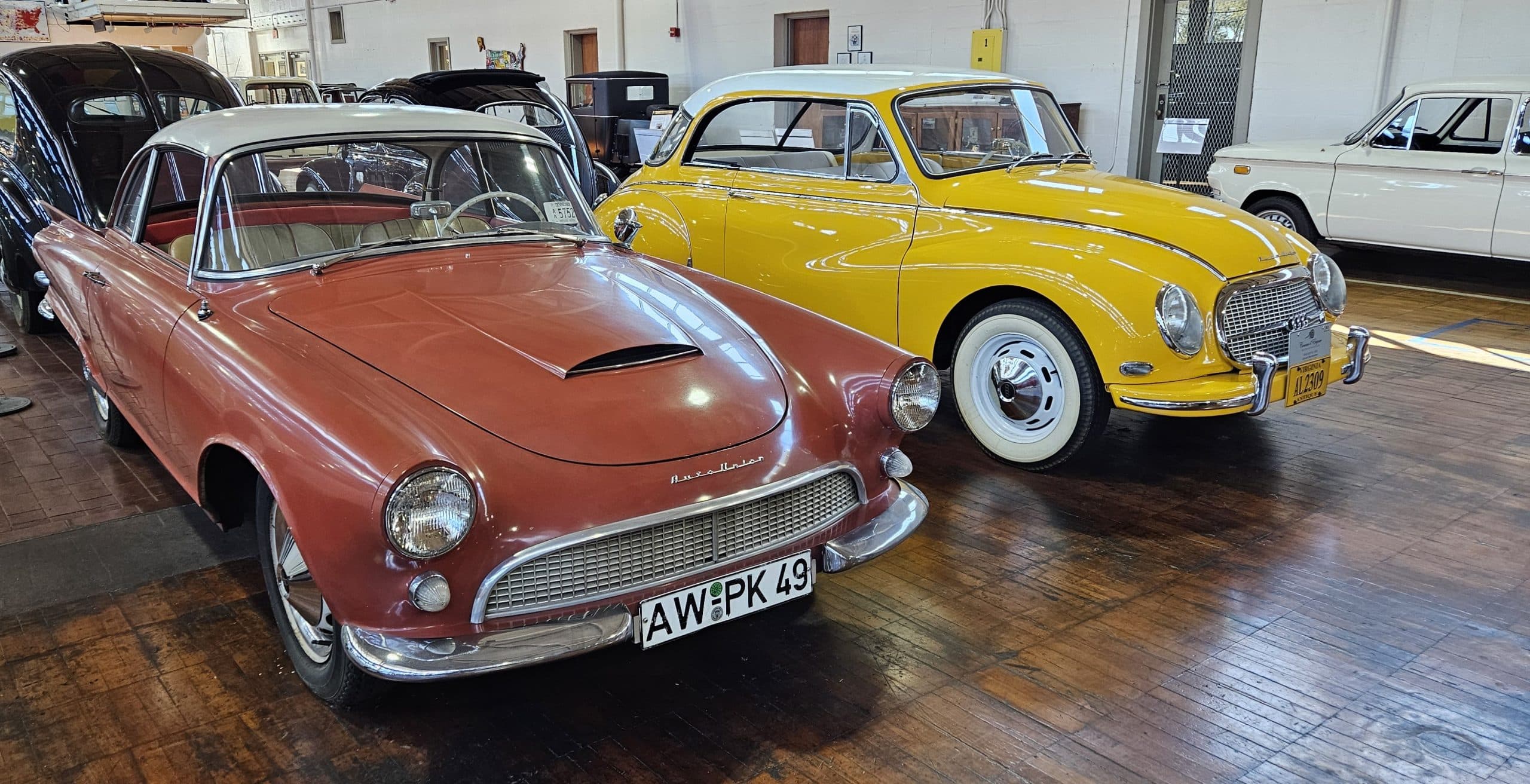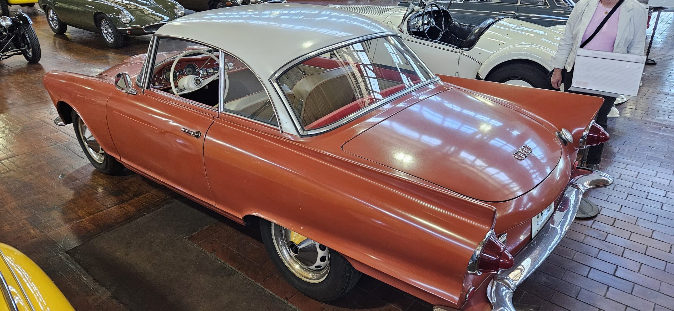 The two aforementioned Auto Union family members are beautiful examples of how car styling evolved from the late 1950s to the early 1960s. In yellow is a 1958 1000 and in coral (guessing on the color name) is a 1962 1000 SP. The former is a Best in Show winner in 2011 and 2012 and still looks the part. The latter carries some patina and has styling reminiscent of a mid-1950s Thunderbird, AKA, the baby bird. It was cool to see them side-by-side for comparison’s sake.