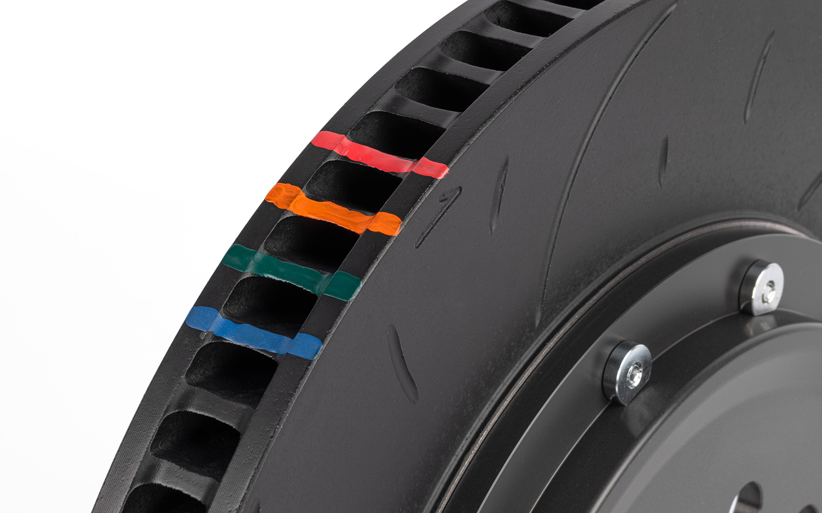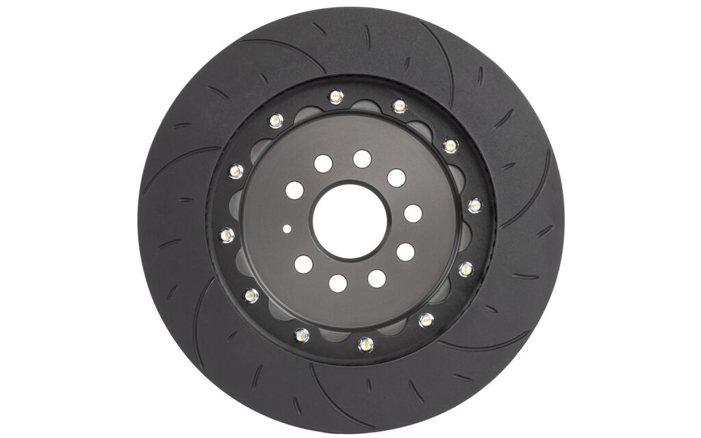 - 2-Piece 370x34mm semi-floating discs with 72 curved directional cooling vanes