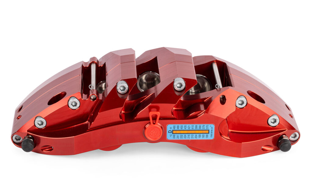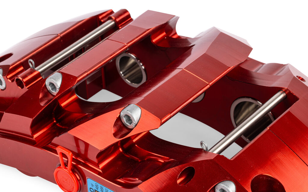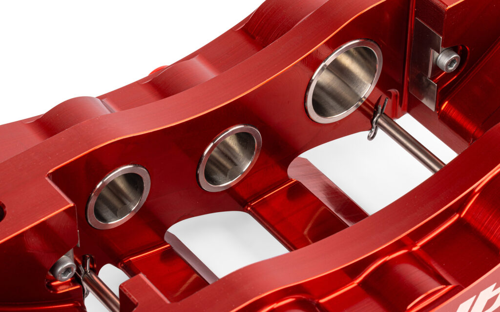 - 6-Piston next-generation weight-savings billet calipers with stainless steel pistons