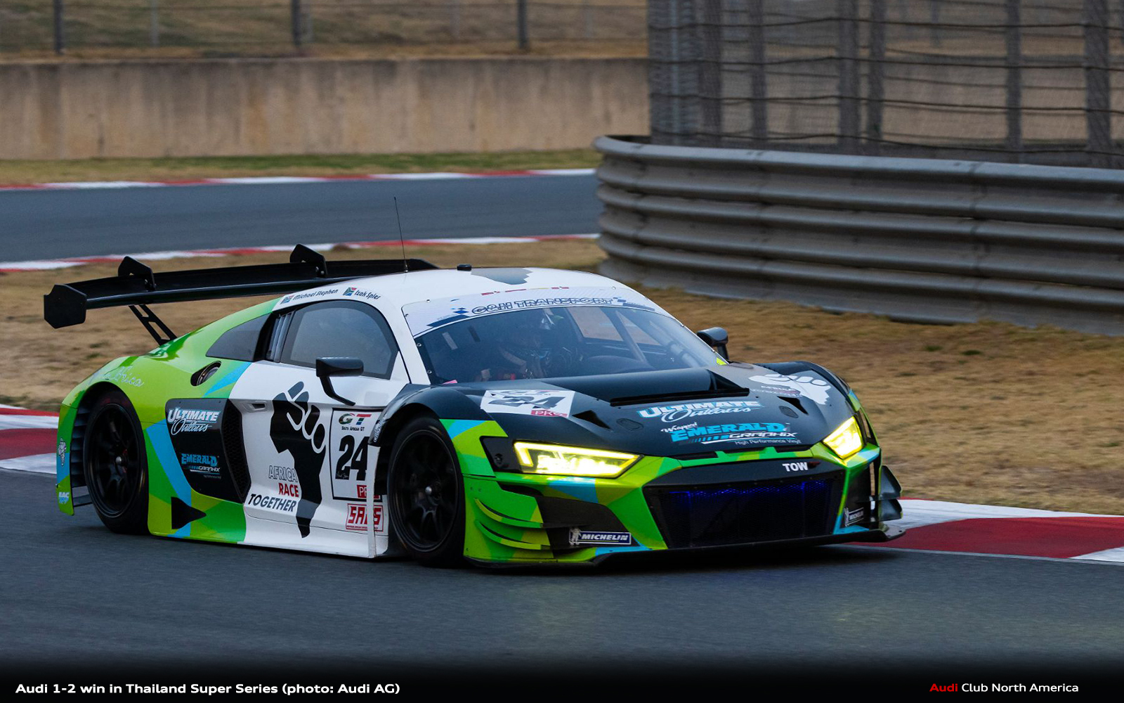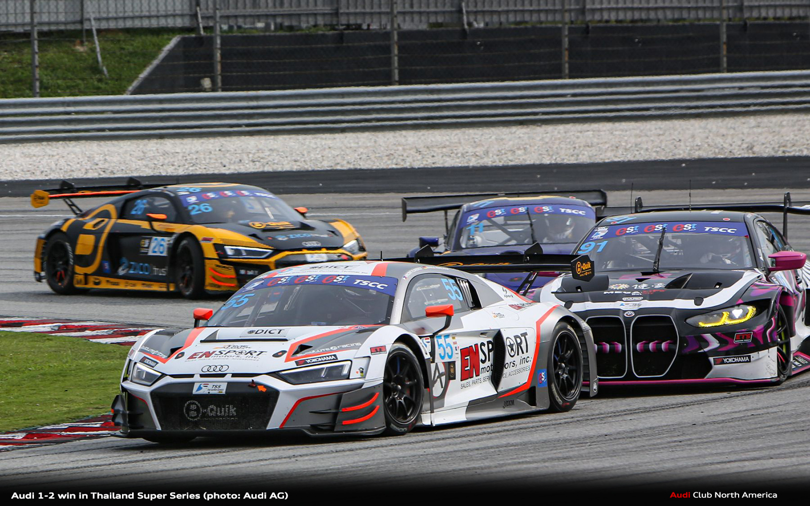 - A one-two win and a third place for the Audi R8 LMS in Asia