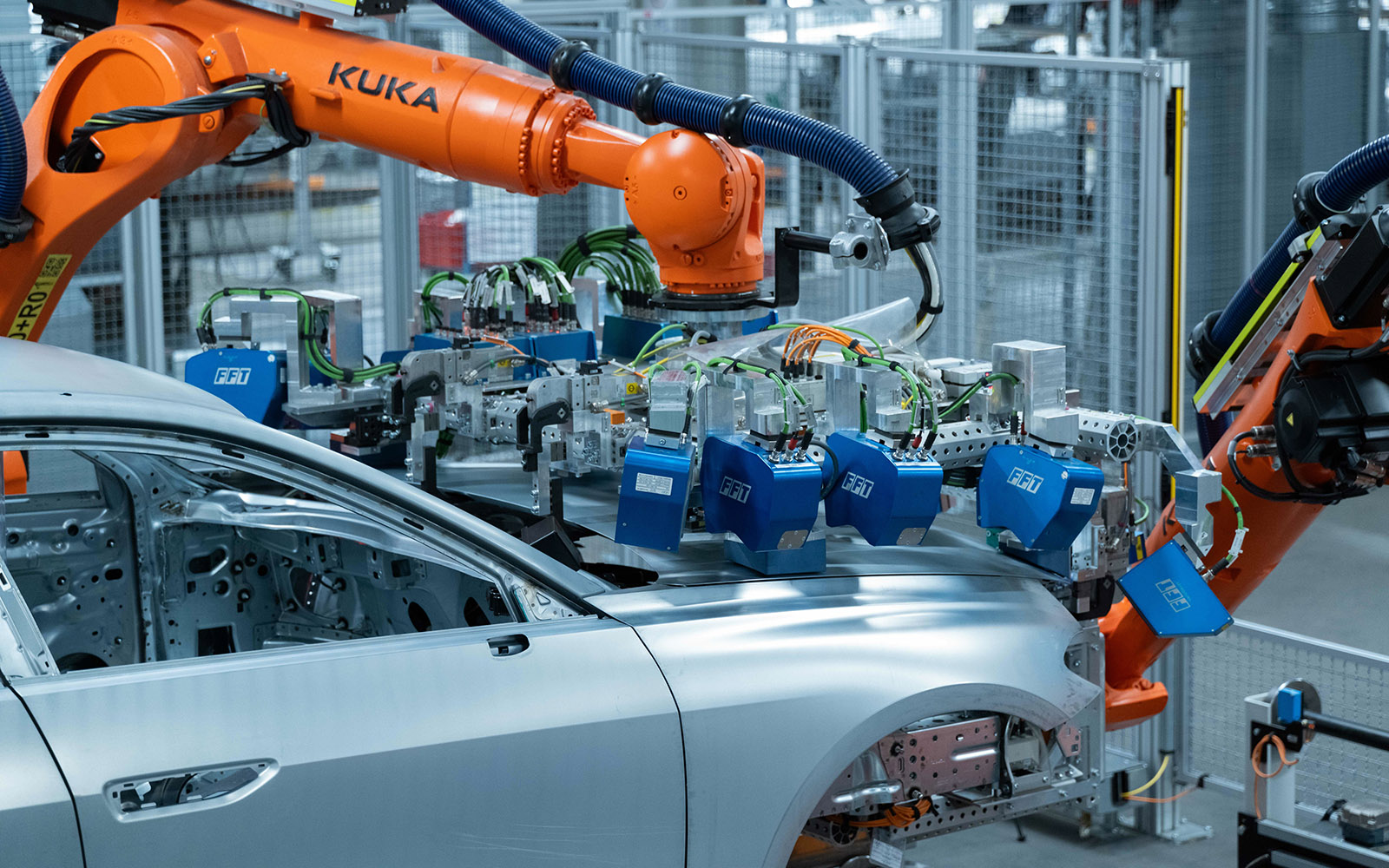 Neckarsulm is the first site in the Group to install all add-on parts in the body shop fully automatically. In this way, Audi improves the fitting accuracy of the add-on parts and minimizes external influences. Seven robots are used simultaneously for the highly complex fender attachment alone.