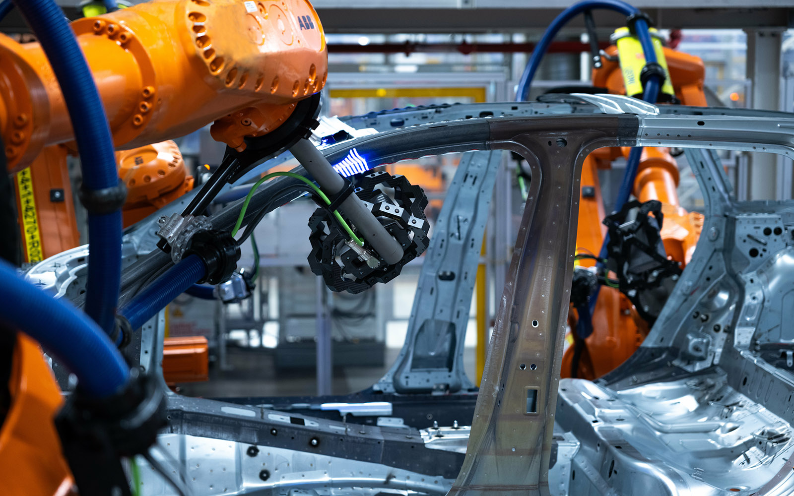 Quality control measurements in the body shop are mainly carried out inline, i.e., without removing a vehicle from the line. New measuring technology is used at two stations. Four robots at each station use measuring sensors to determine the components’ dimensional accuracy. The measurement result is evaluated using software, visualized, and made available to the employees. With this new technology, every vehicle produced can be measured directly on the line. Consequently, Audi significantly increases the number of measurements and can react faster to any deviations. Continuous, interruption-free quality control is also possible thanks to the high degree of automation.