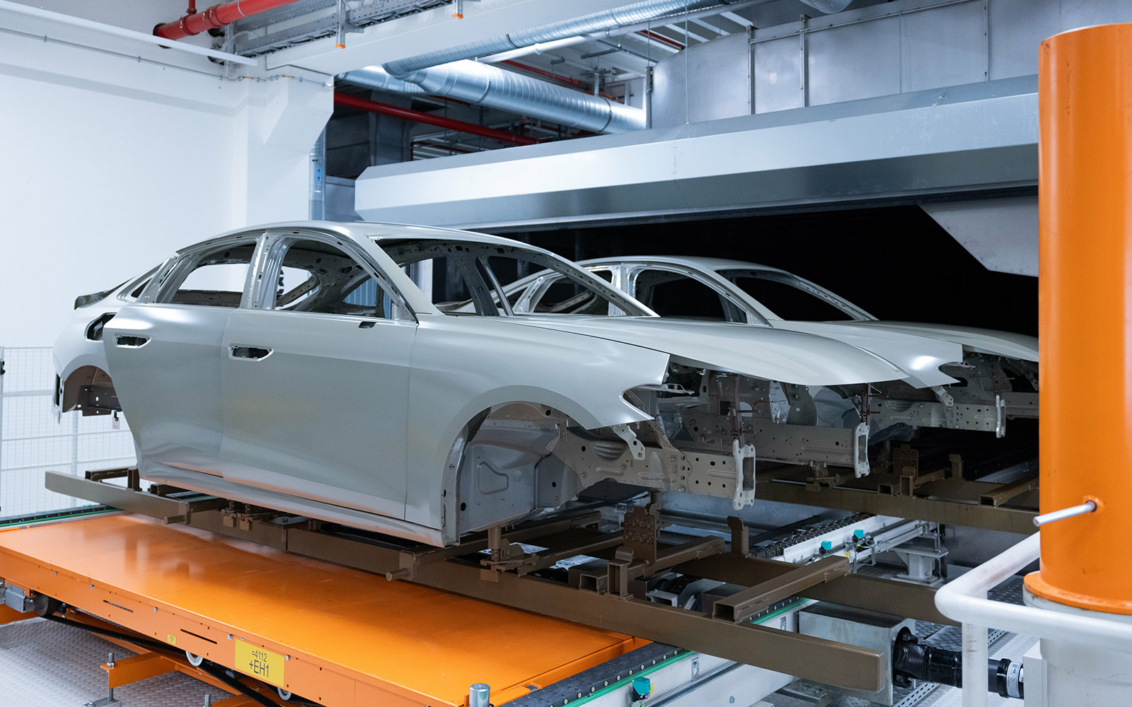 When it is completed in 2025, the renovated paint shop at the Neckarsulm site will be among the most modern in the automotive industry. Numerous processes have already been optimized, and environmentally friendly procedures have been introduced for the launch of the Audi A5. While sustainable water-based paints have long been standard at Audi, the latest models also undergo a new painting process. The filler is replaced by a pre-zone paint that can be applied wet-on-wet. The previous separate drying of the filler is no longer necessary, allowing the four rings to reduce energy consumption significantly: Up to 140 kWh can be saved per vehicle.