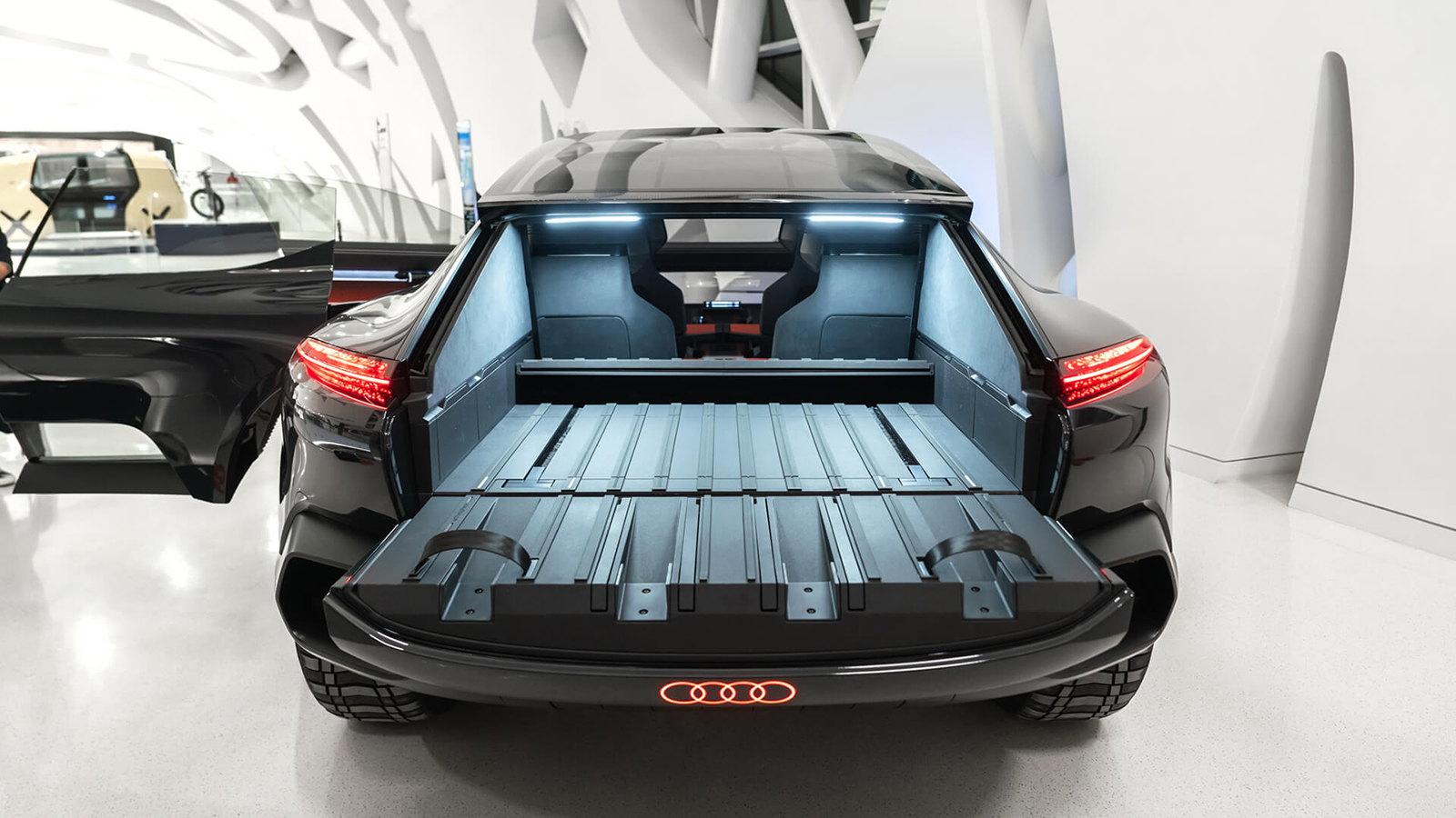 One of the distinctive activesphere features is its unique transformative capability, which allows the car to effortlessly switch from a sleek Sportback into an open “active back”. This provides ample space for adventure gear, catering to the diverse demands of modern life and facilitating a seamless transition from city commutes to weekend getaways. In its pickup transformation, the activesphere is ready for transporting top-class sports gear, offering enough space in the cargo bed for two e-bikes. This versatile design ensures adaptability for various lifestyle needs, making it an ideal companion for any journey.