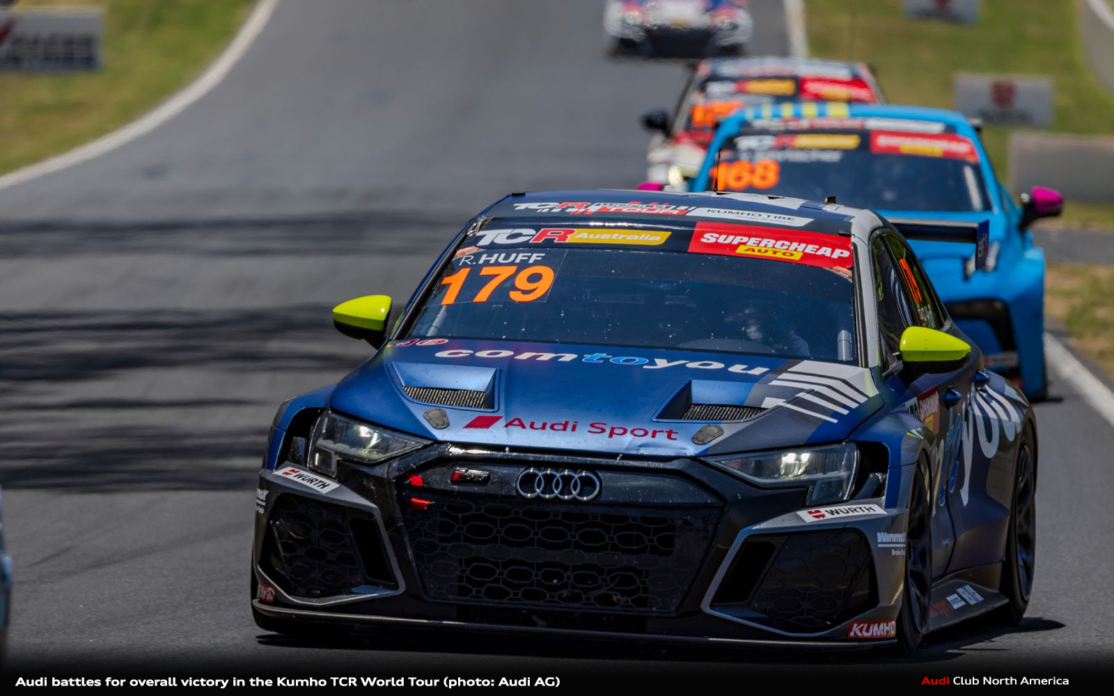 Maximum suspense is guaranteed in the title fight in the only worldwide TCR racing series: Audi driver Rob Huff is level on points with Yann Ehrlacher at the top of the standings after the race weekend in Bathurst, Australia. Ten podium results for the Audi R8 LMS round off a successful race weekend for the customers of Audi Sport customer racing.