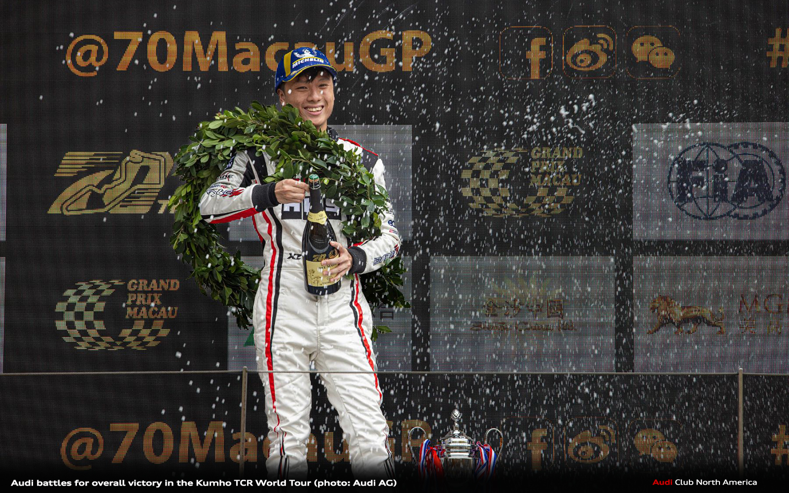 Two podium results on the street circuit: On the first of two race weekends in Macau, two customer teams each achieved a podium result with the Audi RS 3 LMS. Chan Wengtong finished third for Team 326 Racing in the first race of the TCR Asia Challenge. Ten Audi cars were on the grid in the field of 24 participants. In the second race, Li Kahei from the Shaanxi Tianshi Racing Team crossed the finish line half a second behind in second place after leading for four laps. Together with Hu Heng, who was fourth for the Shaanxi Tianshi Racing Team in the first race, Chan Wengtong and Li Kahei each received an entry for next weekend’s Guia race at the same venue for their good results. They will therefore take part in the final round of the Kumho TCR World Tour.