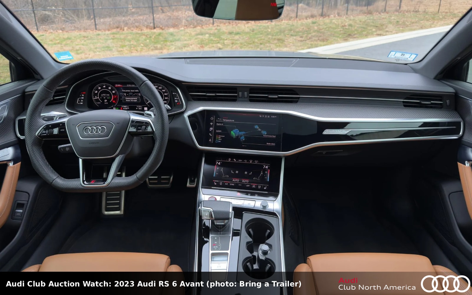 This Canadian market long roof was imported in March 2023 before selling at auction in May 2023 to its first real owner. The colors are Nardo Gray outside with a Carbon Optic package, and Cognac and black inside with matte carbon fiber trim. Options include Drivers Assistance and Executive packages, red brake calipers, and Sport exhaust for the 4.0L twin-turbo V8 (591HP/590 lb-ft). A ZF-sourced 8-speed Tiptronic, Sport diff, and quattro complete the drivetrain. The Carfax report is clean but there’s an open recall #90TV for the Rearview Camera Software.