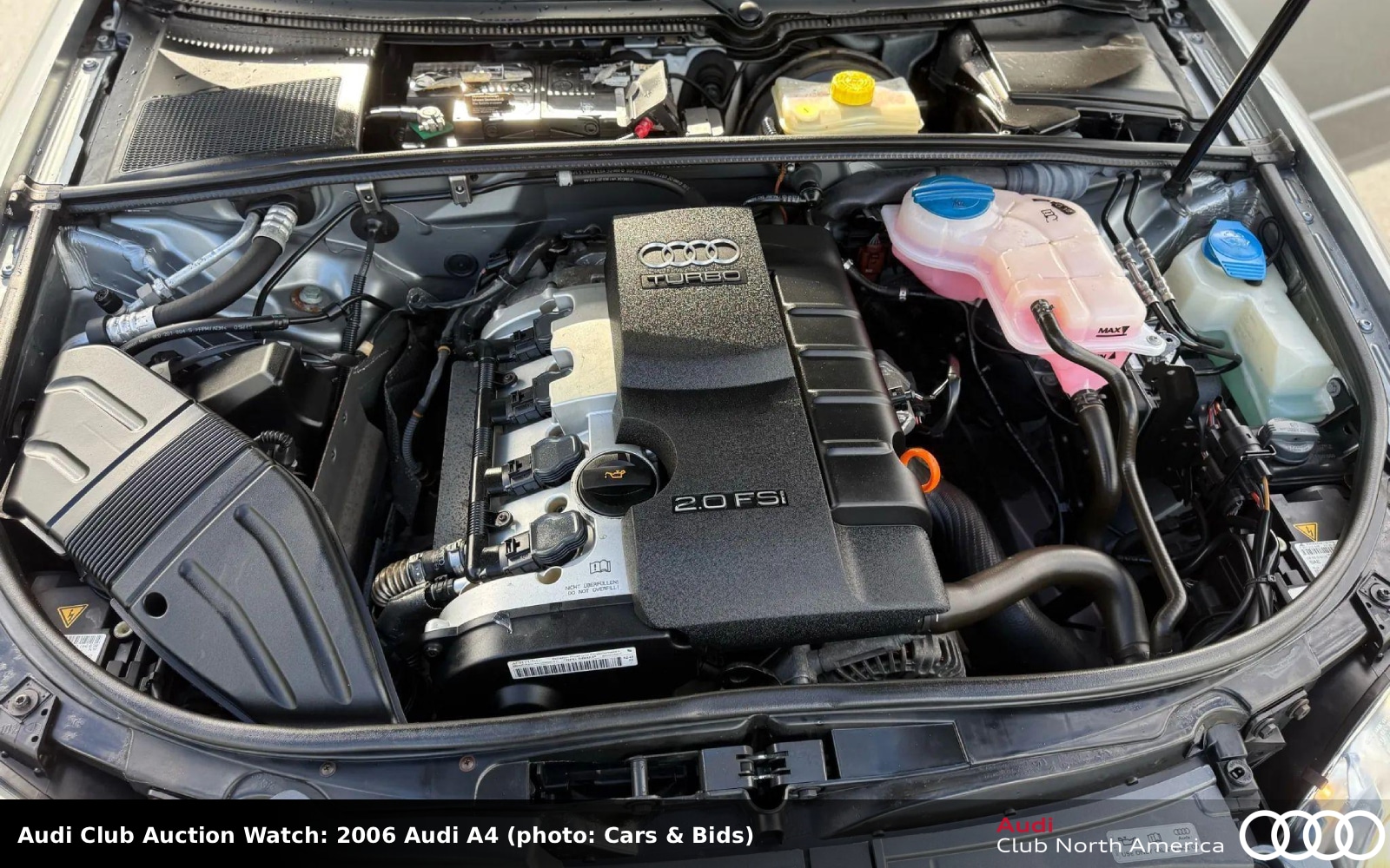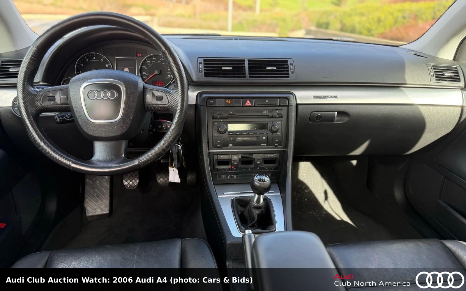 No Reserve. This may only be an A4 equipped with a 2.0L I4 (200HP/207 lb-ft) but it has a 6-speed manual and, per the Carfax, has a great service history. The exterior is Quartz gray metallic, the interior black with Premium and Technology packages, aluminum trim, and an Audi Symphony stereo. Carfax also reports this was a one-owner car before dealer acquisition in December 2025, plus minor damage to the left rear and rear in November 2006.