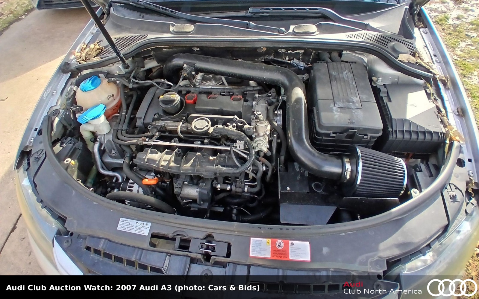 No Reserve. This Light Silver metallic over black hatchback is now a “hot hatch’ thanks to Audi Club sponsor APR’s Stage 1 ECU tune and spark plugs for the 2.0L I4 which also wears a K&N Typhoon air intake and exhales into a Euro Sport cat-back exhaust. The 6-speed manual has a ECS Tuning Stage 3 clutch and is actuated by their short shift kit. Please read the listing for more mods which were all done by the current owner after purchase off C&B in December 2024 for $8,300. However, the owner failed to address the headliner, which is pinned up, although the A/C was fixed in March 2025 per the Carfax report that lists three previous owners and no accidents/damage.