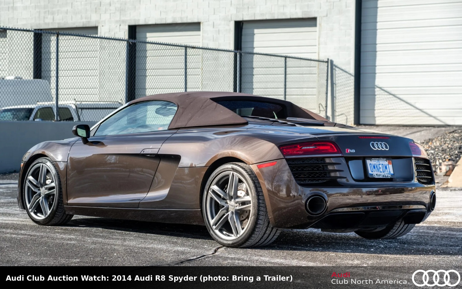 Bid quickly, auction ends mid-PM today! Not exactly droptop season yet, but this Teak Brown metallic example is now looking for its sixth new home. The exterior has an Audi Exclusive Black Optic and a brown soft top that’s over a black interior with a Full Leather package, a rearview camera, an infotainment system with Audi navigation, and B&O sound. The 4.2L V8 sits in a bed of carbon fiber, is factory rated at 430HP/317 lb-ft and spins a 6-speed manual. Carfax reports no accidents or damage.