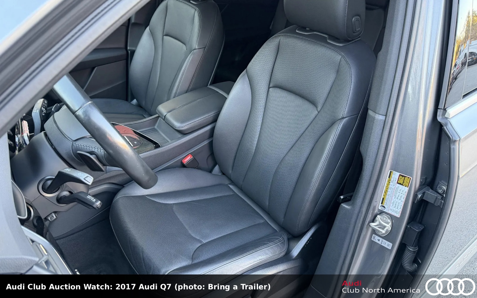 Bid quickly, auction ends early PM today! No Reserve. The shade of gray on this full-size SUV is called Graphite Gray metallic. The black interior has heated and ventilated leather front seats, heated second row seats, gray oak wood inlays, an 8.3″ Audi MMI infotainment display, Apple CarPlay and Android Auto connectivity, and Bose sound. The supercharged 3.0L V6 (333HP/325 lb-ft) had its water pump and serpentine belt replaced in May 2025 and bolts to an 8-speed Tiptronic. The Carfax report is clean and lists two previous owners.