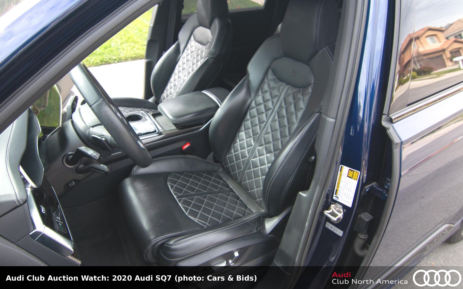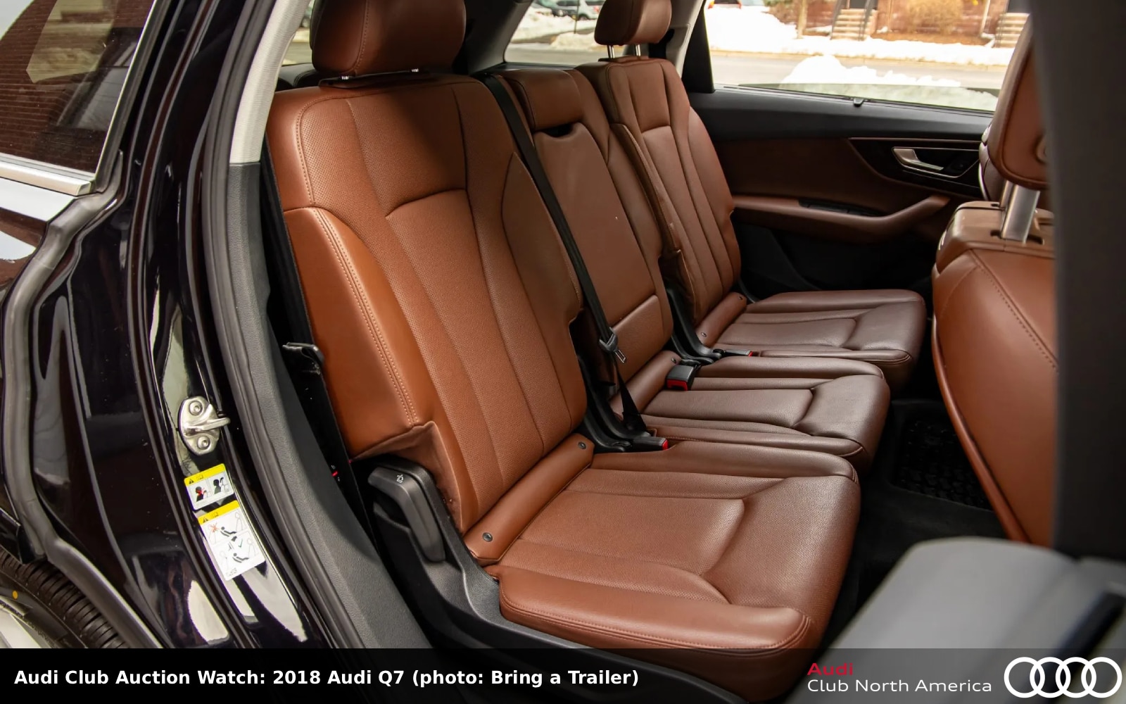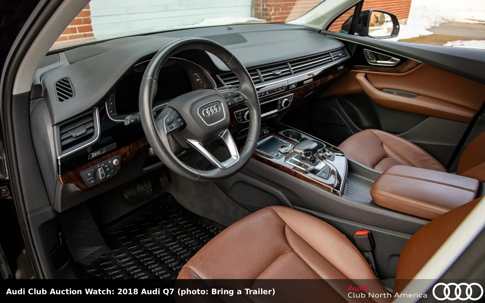 No Reserve. This full-size SUV is listed as black over an interior featuring heated and ventilated Cedar Brown leather front seats. Also inside are walnut trim, a Cold Weather Package, power-folding third row seats, Apple CarPlay and Android Auto connectivity, MMI Navigation Plus, a WeatherTech cargo mat, and Bose sound. The supercharged 3.0L V6 (333HP/325 lb-ft) bolts to an 8-speed Tiptronic. Carfax reports this was a one-owner car before dealer acquisition with no accidents/damage.