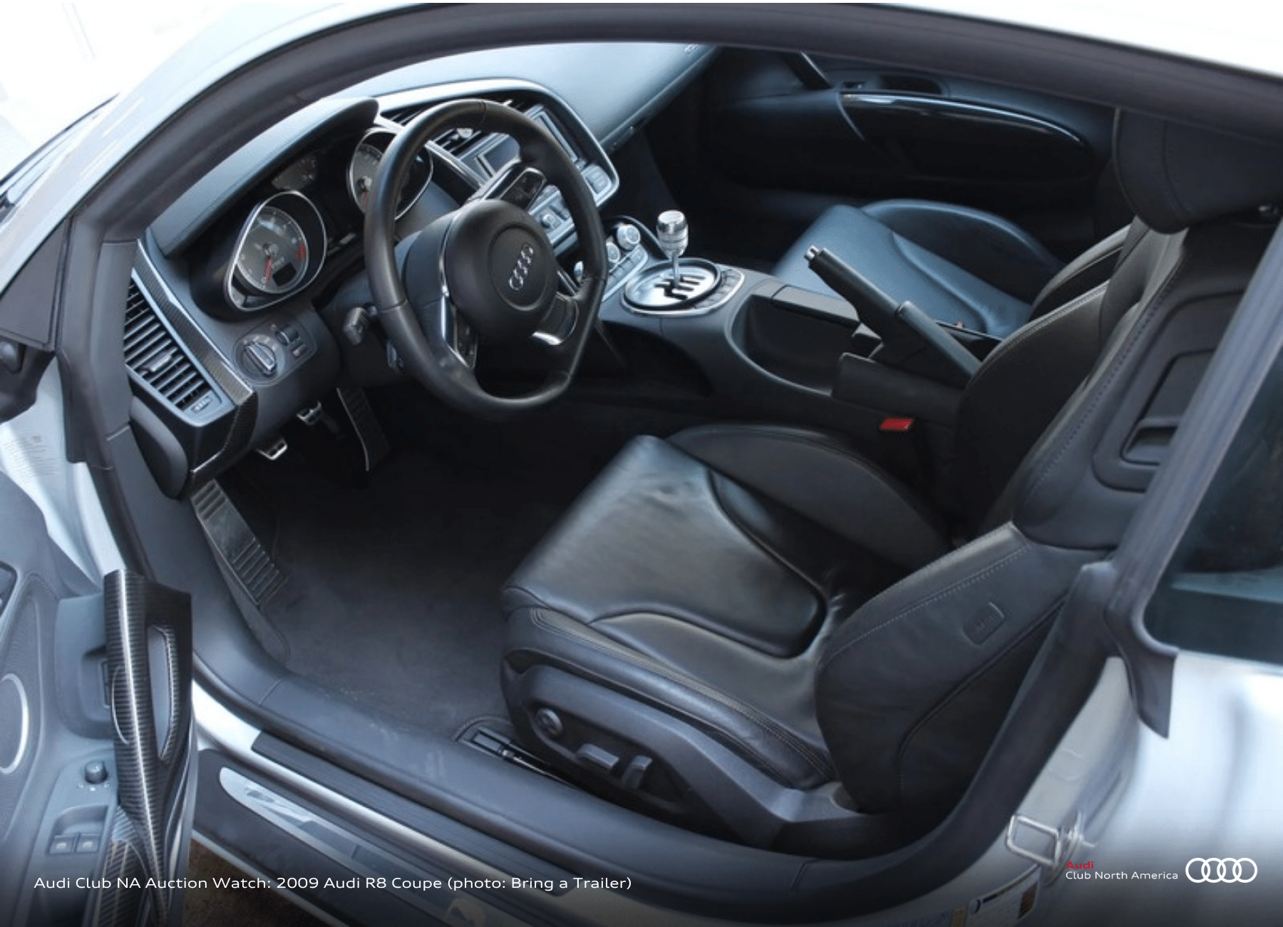 Low-mileage R8s still exist! This Ice Silver metallic example is equipped with Premium and Enhanced Leather packages, Carbon Sigma side blades, carbon fiber engine trim, carbon fiber interior trim, Audi Navigation System Plus, Audi Parking System Plus with a rearview camera, B&O sound, and 19” alloy wheels. The 4.2L V8 is Audi rated at 420HP/317 lb-ft and spins a 6-speed manual. The clean Carfax reports four previous owners but in the lsiting’s comments the seller states he’s owner #3. Also see the comments for more info on service done.