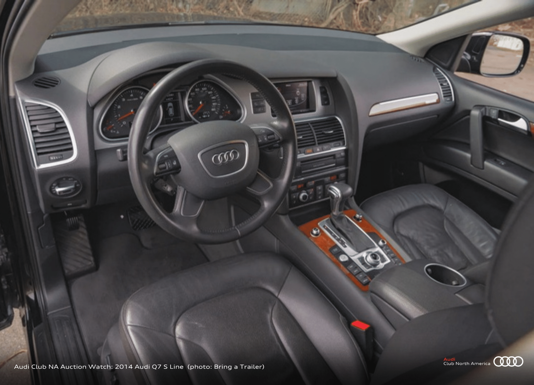No Reserve. Here’s a Night Black, Prestige trim-level Gen 1 Q7. The black interior with three-row leather seating, heated and ventilated up front, is optioned with Warm and Cold Weather packages and has wood trim and Bose Surround sound. The supercharged 3.0L V6, factory rated at 333HP/325 lb-ft, drives its quattro through an 8-speed Tiptronic. The otherwise clean Carfax report is tainted by a repossession in January 2026 from owner #3.