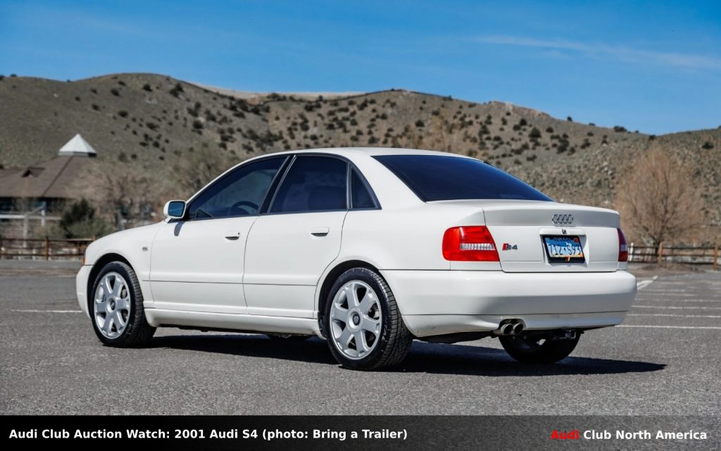Per the comments, this B5 is a 2001.5 model.  The drivetrain: a twin-turbo 2.7L V6, factory rated at 250HP/258 lb-ft, and a 6-speed manual.  The Casablanca White has a few flaws and it’s over a black interior with Onyx Silk Nappa leather and also a few common flaws/wear.  Tires are date coded 2017 but the Carfax report is clean.