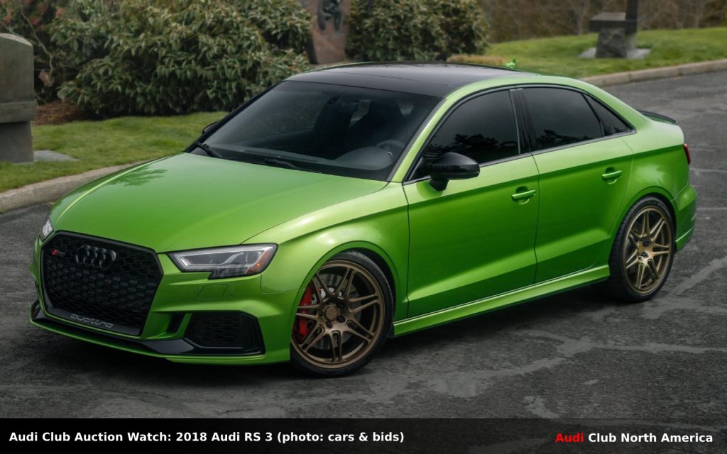This listing has cars & bids’ new Lemon Squad Inspection Report feature, see the icon in the listing next to the clean Carfax report link.  The exterior is Audi Exclusive Java Green, the black interior has the red RS Design package.  Please read the listing for the long list of performance and cosmetic mods.