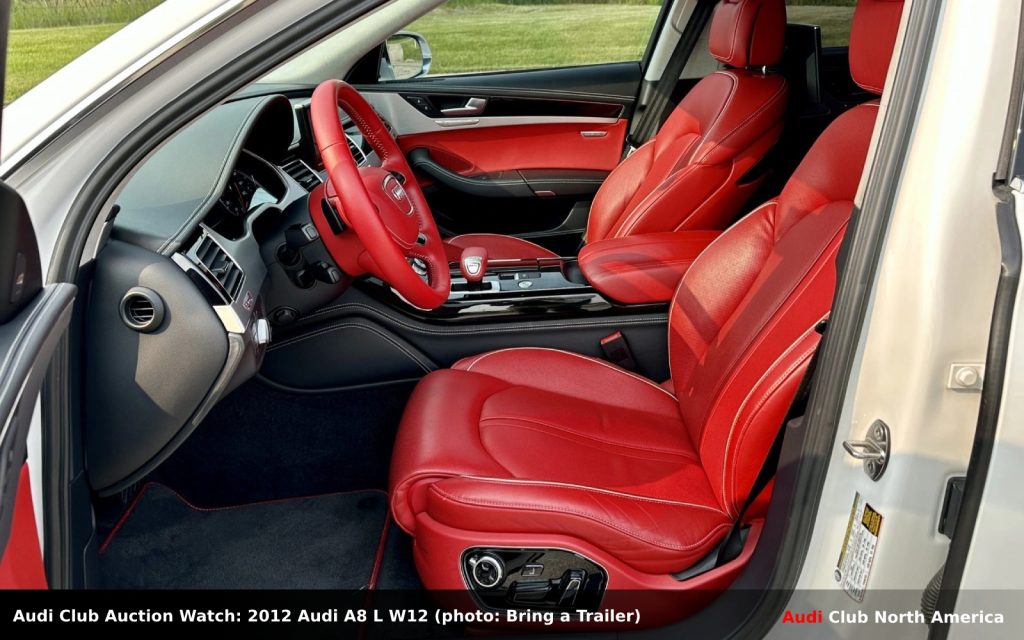 No one can deny that’s an eye-catching interior, it’s an Audi Exclusive Crimson Red leather with white contrast stitching contacted by black and aluminum trim. And it has a W12 Executive Rear Seat Package. Under the white hood lies the 6.3L W12 and it spins an 8-speed Tiptronic. Carfax reports an accident that likely occurred between June 2013 and August 2014 with no further information provided.