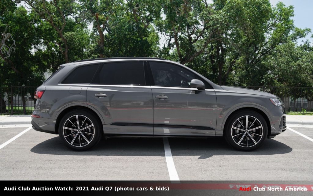 That gray shade is Samurai Gray and it goes well with the Black Optic package. Inside, the voluminous black interior has Prestige-level trim goodies plus Executive and Convenience packages complete with power-folding third row seating. Drivetrain is a 3.0L turbocharged V6 with 48-volt mild hybrid system (rated 335HP/369 lb-ft by Audi) and an 8-speed Tiptronic. It also has a clean Carfax report.