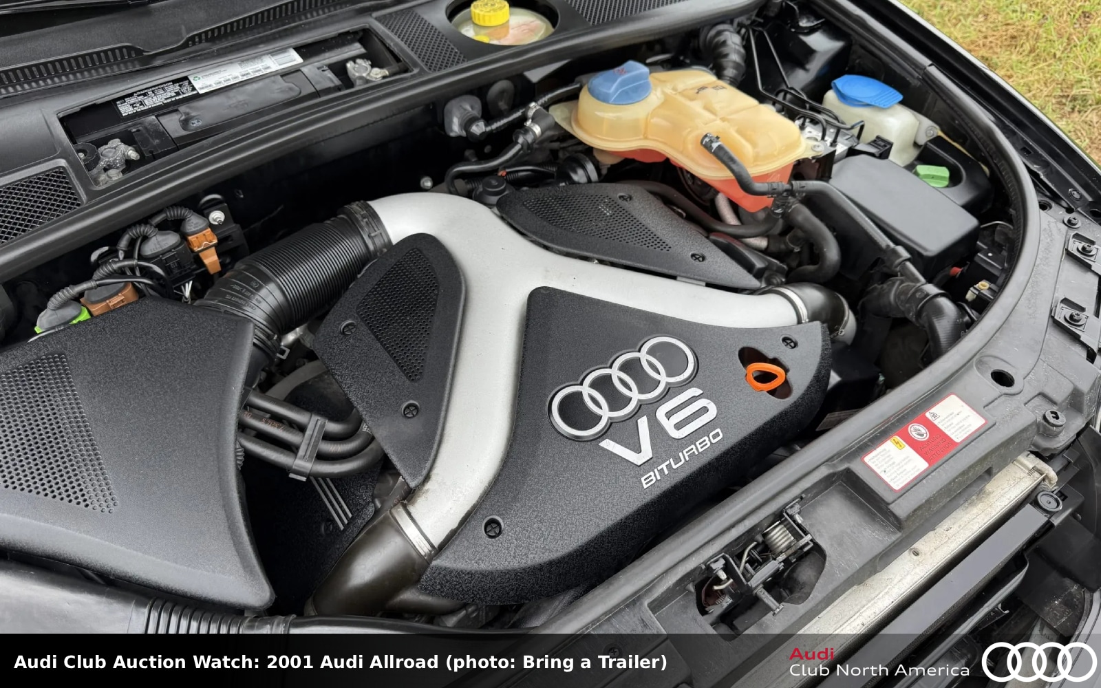 This long roof is finished in Brilliant Black over an interior featuring two-tone gray and beige leather seats, woodgrain trim, a CD/cassette stereo linked to a Bose sound, and only a few dead pixels in the center display. The adaptive air suspension had all four air struts replaced under current ownership. Drivetrain: a twin-turbo 2.7L V6 (factory rated at 250HP/258 lb-ft when new), 5-speed automatic transaxle with a Torsen center diff and quattro. Carfax reports four owners and minor damage to the rear in April 2024.