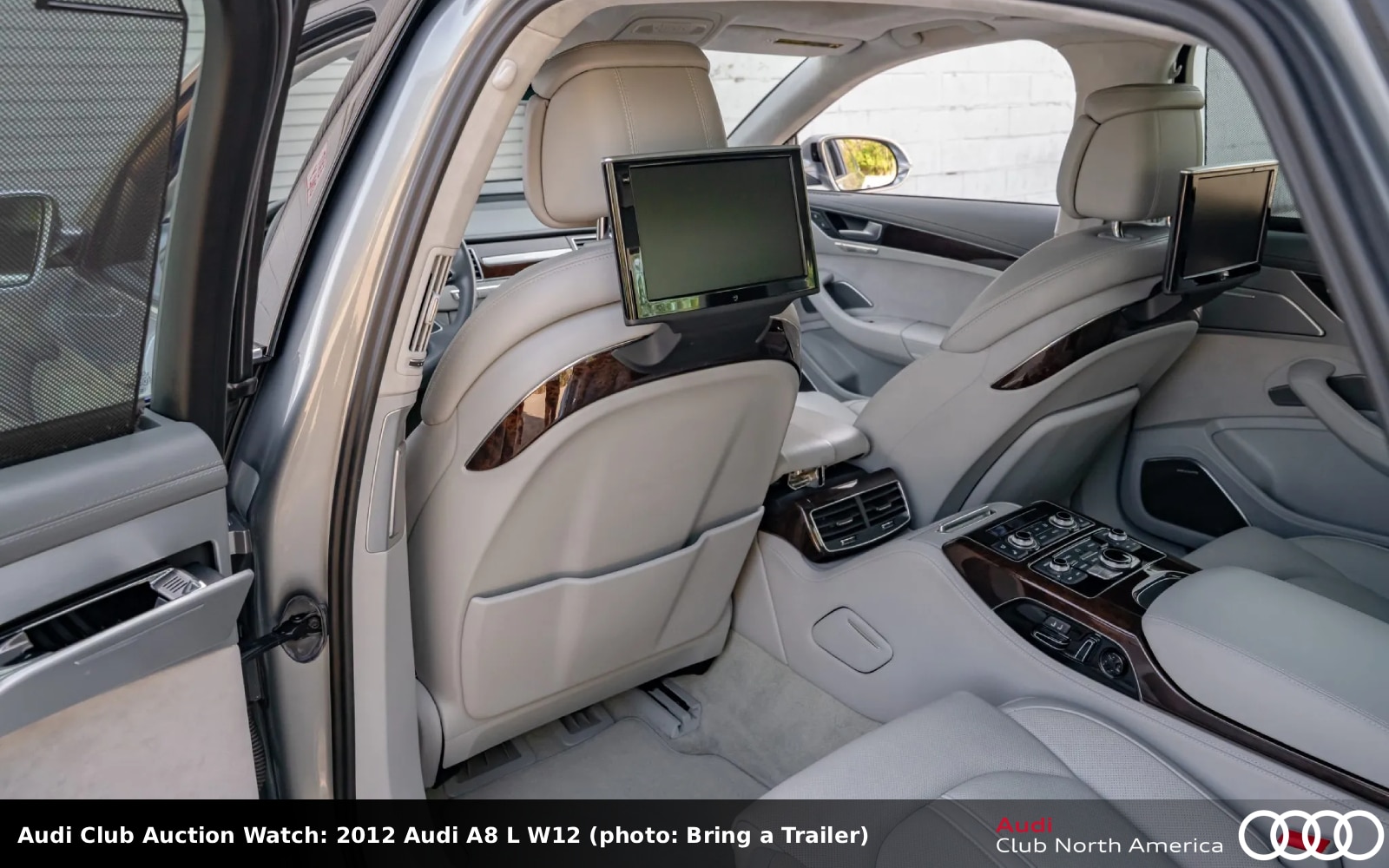 No Reserve. This Audi flagship is powered by the big 6.0L W12 engine factory rated at 500HP/463 lb-ft which bolts to an 8-speed Tiptronic. The exterior is Quartz Gray metallic but it’s all about the full-leather interior with Titanium Gray seats, heated and ventilated in the rear, rear entertainment system, a rear console refrigerator, Assam Gray Varona wood trim, B&O sound, Night Vision Assistant, adaptive cruise control, Driver Assistance Package, and Audi MMI infotainment with navigation. Carfax reports minor damage in May 2022 but no further details.