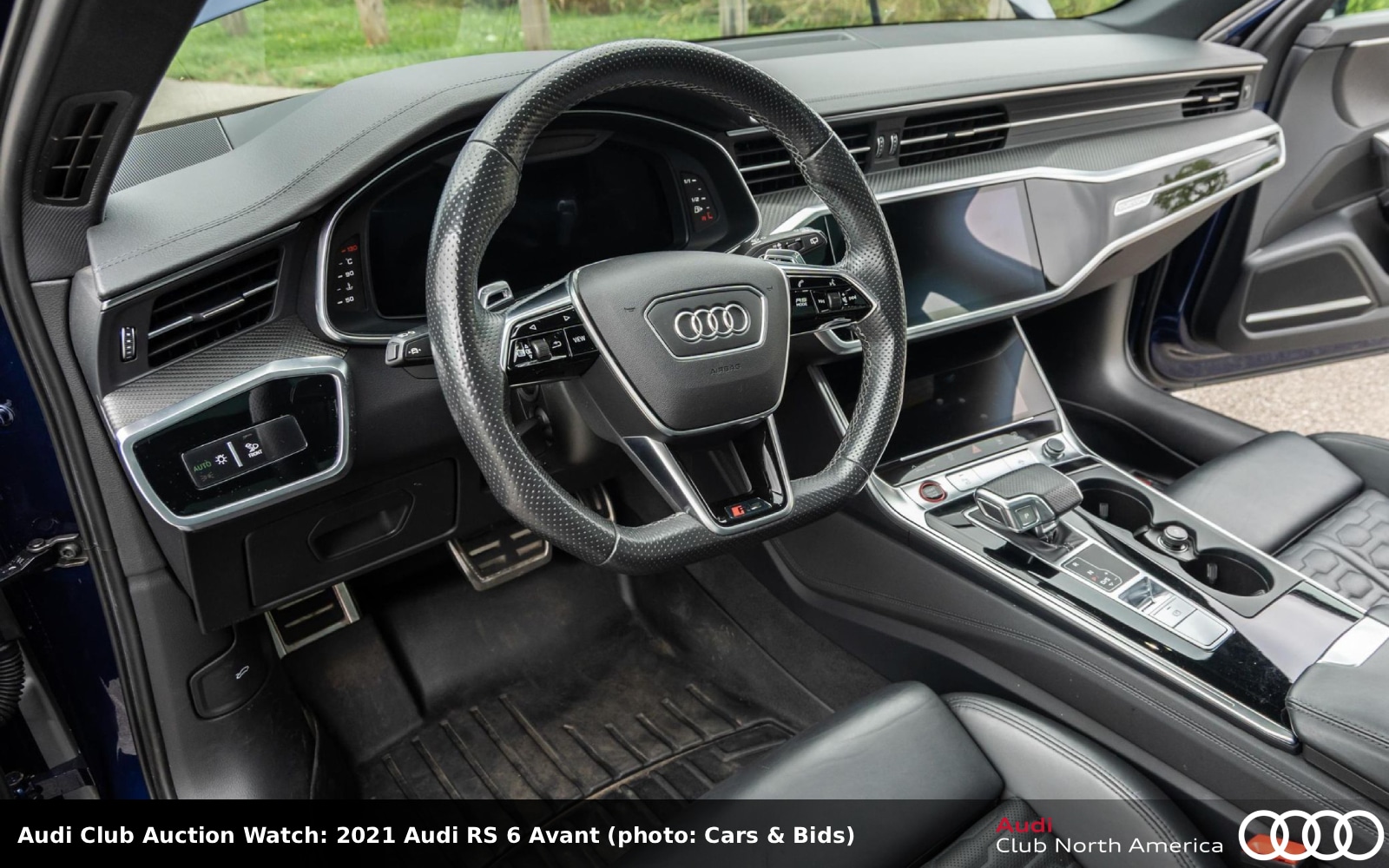 This is the first high-mileage RS 6 Avant we’ve seen on Auction Watch and it has some wear-n-tear to show for it. Please read the listing’s Known Flaws and Comments sections and look at photos #11-14 and #78-81. It’s Navarre Blue metallic with Carbon Optic package outside, black inside with heated and ventilated front sport Valcona leather seats, Drivers Assistance package, WeatherTech floor mats, and B&O premium sound. The 4.0L twin-turbo is Audi rated at 591 HP/590 lb-ft and pairs with an 8-speed Tiptronic. The clean Carfax report states it was delivered in Quebec, Canada, and registered as a commercial vehicle before US-import in October 2024. Also there’s an open recall #90VC for the Virtual Cockpit Instrument Cluster.