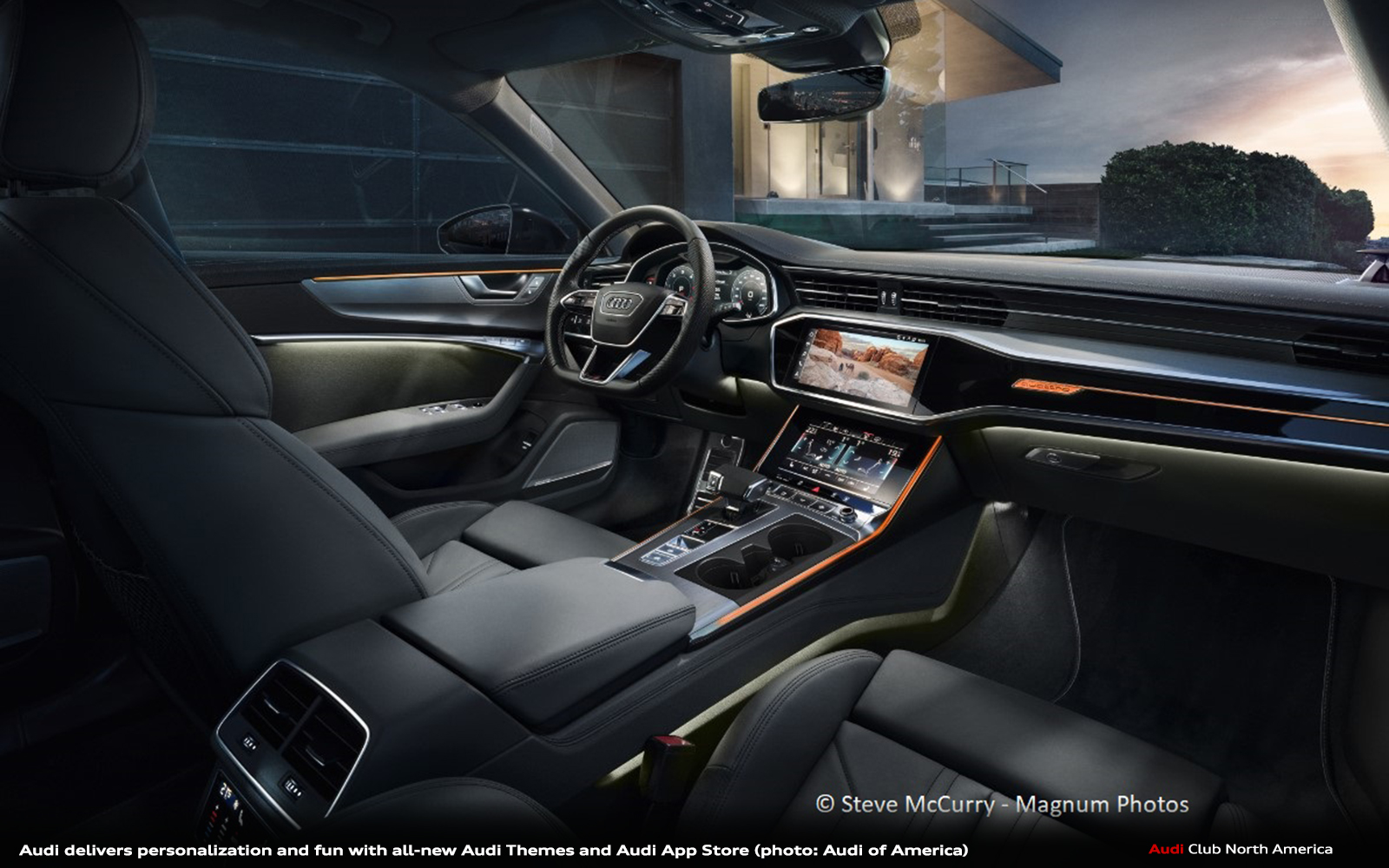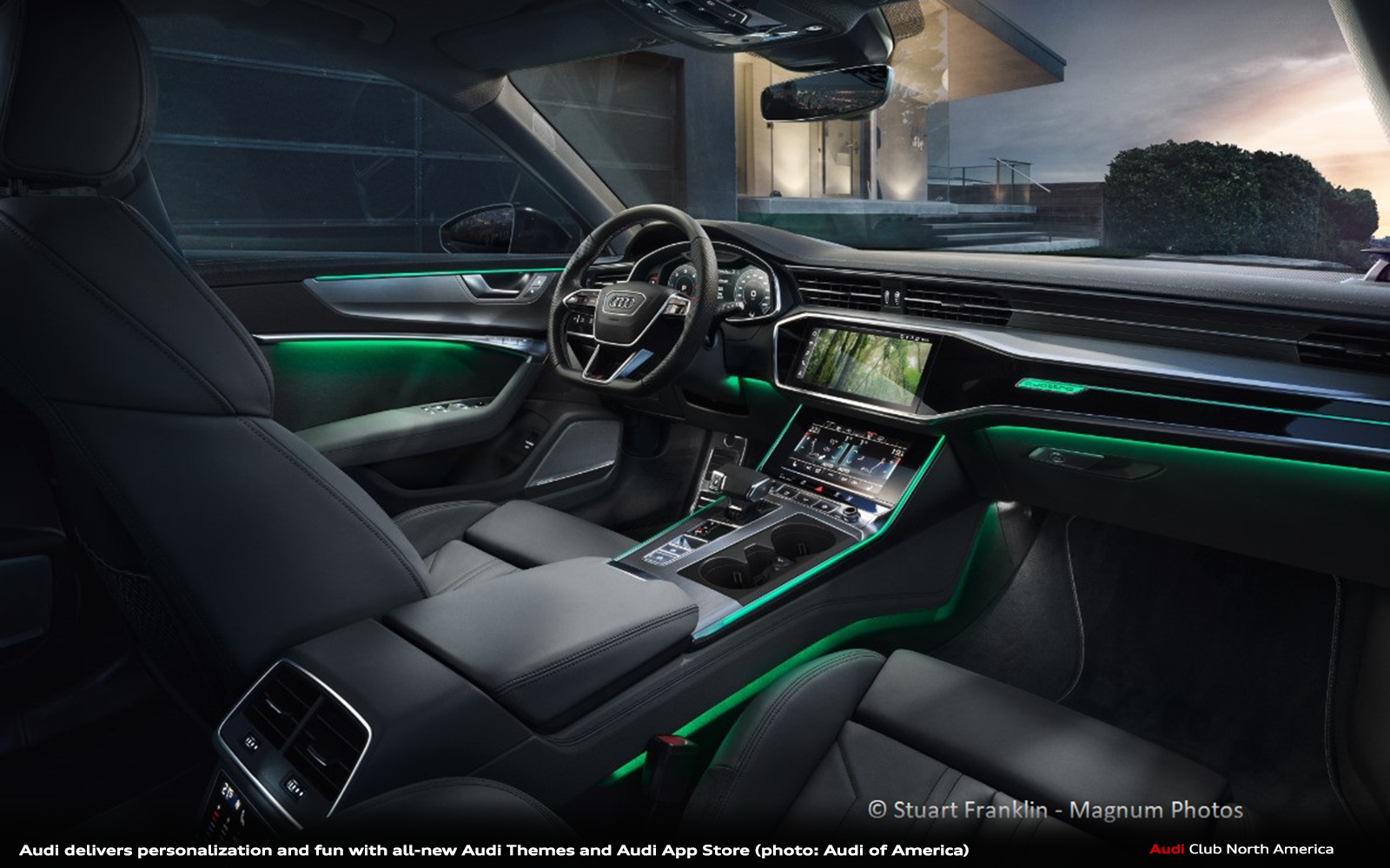 Customers can also have available in-vehicle ambient lighting selections automatically set to compliment the image when the vehicle is equipped with the optional Ambient Light Package plus. With many designs to choose from, Audi customers can express their personality and creativity through their vehicle display similar to a cell phone background or computer desktop wallpaper. Whether it be scenes of the northern lights, serene landscapes or fun holiday motifs, owners can update their vehicle interior for every occasion.