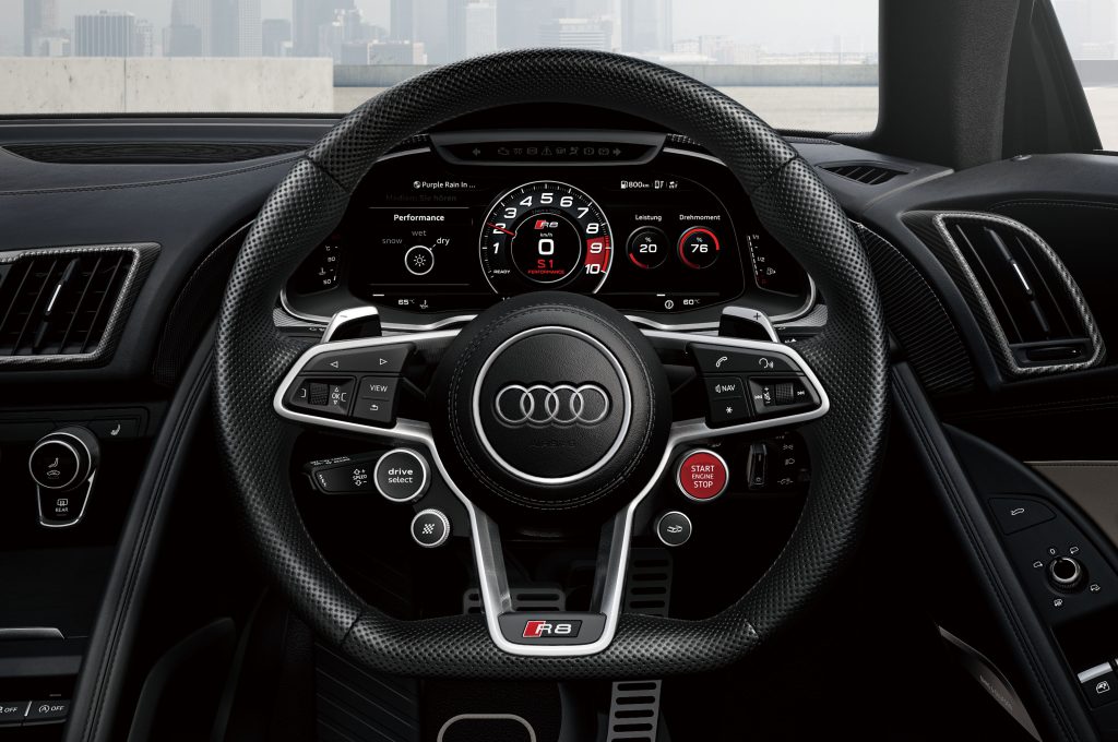 The base model of the Audi R8 Coupé Japan final edition is the Audi R8 Coupé V10 performance 5.2FSI quattro S tronic. The naturally aspirated high-rotating 5.2-liter V-type 10-cylinder engine has a maximum output of 620PS and a maximum torque of 580Nm. The 7-speed S-tronic transmission is combined with quattro four-wheel drive, and the 0-100 km/h acceleration runs through in 3.1 seconds (manufacturer’s measured value). The suspension is equipped with an Audi Magnetic Ride, which controls the damping force of the damper according to the driving situation and realizes comfortable ride and excellent driving dynamics.