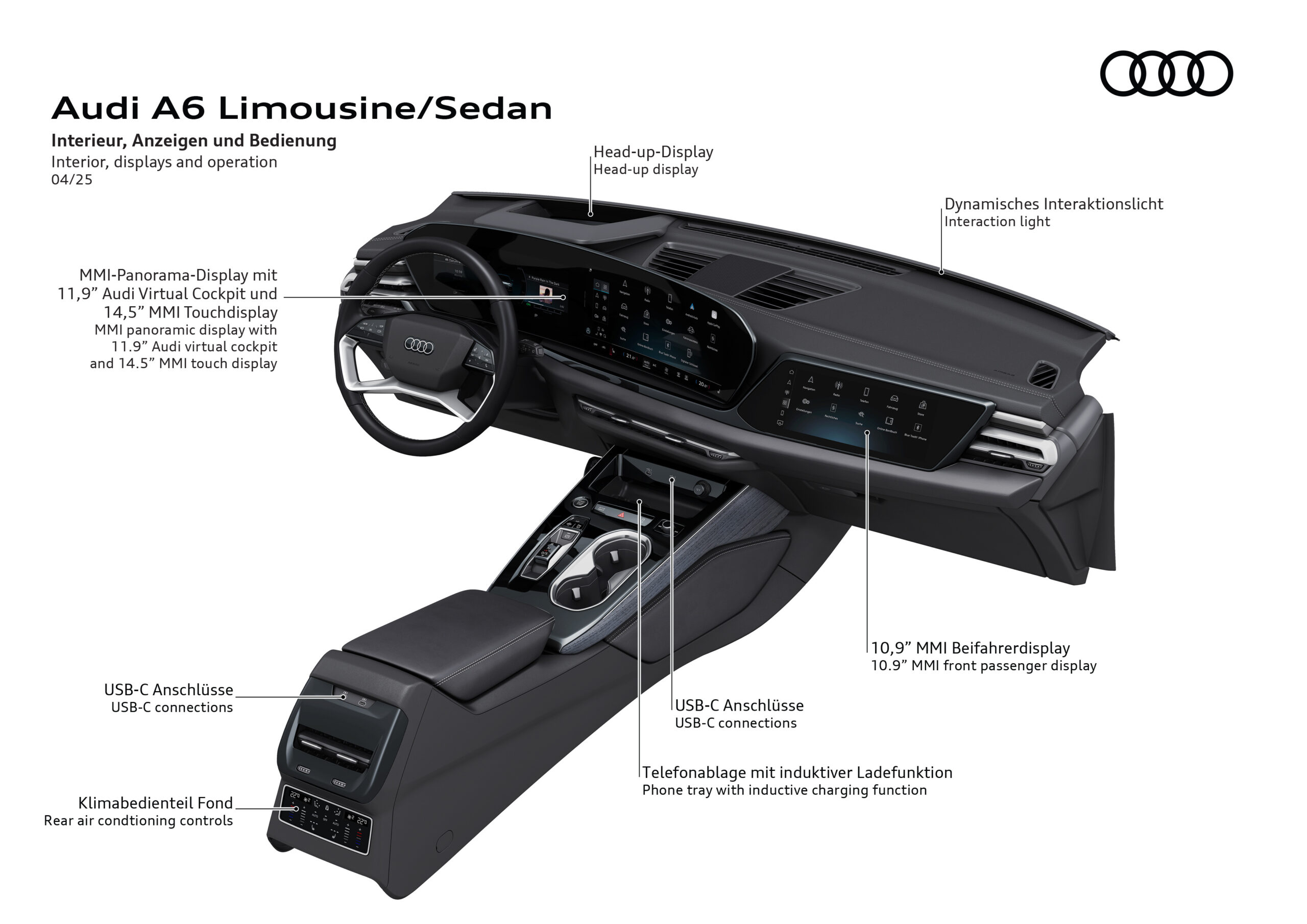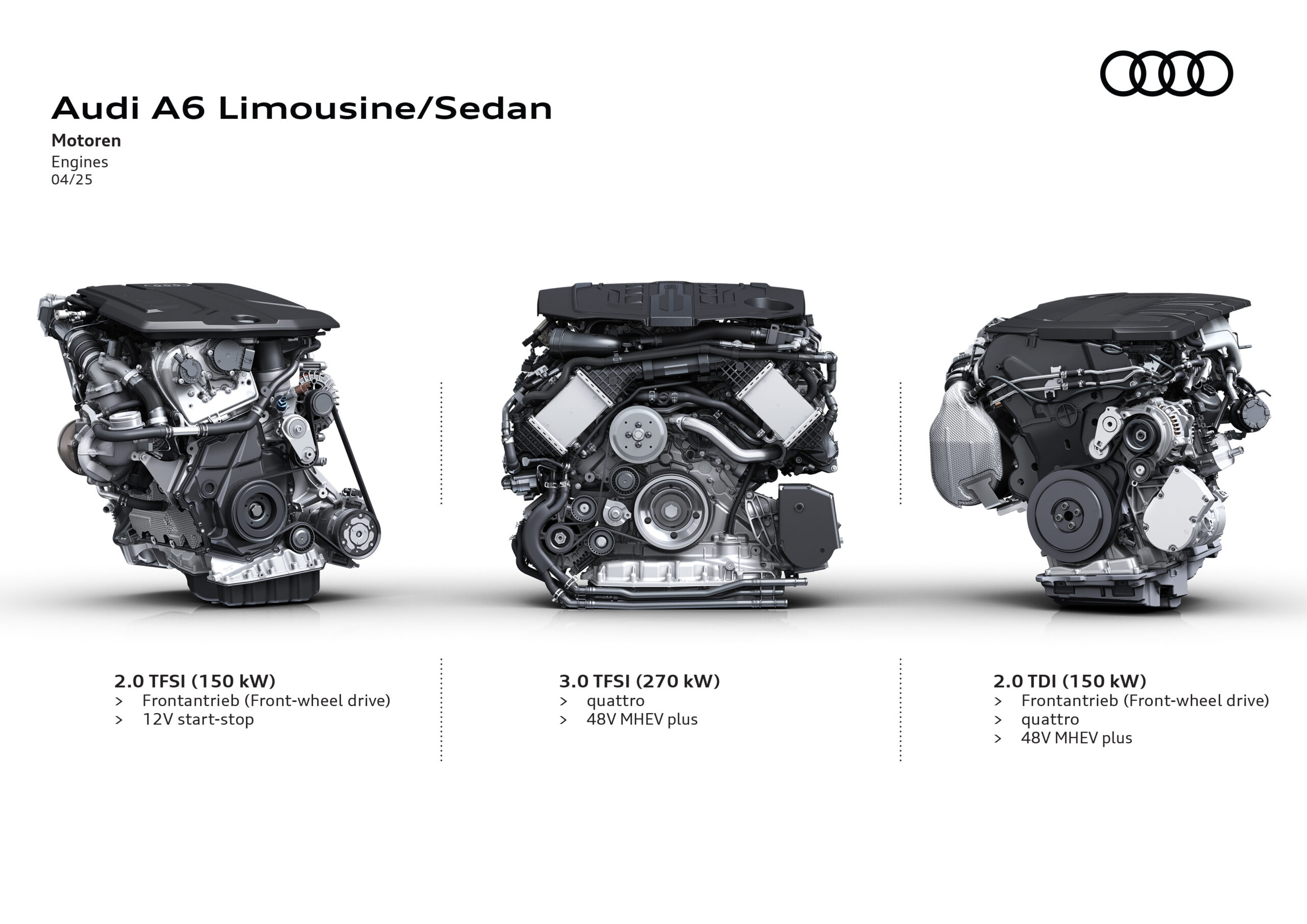 The new A6 Sedan will be produced in Neckarsulm and sold worldwide. It can be ordered starting in mid-April 2025. With the entry-level TFSI 150 kW3 engine, the A6 notchback will start at 55,500 euros. Deliveries to customers will begin in summer 2025.