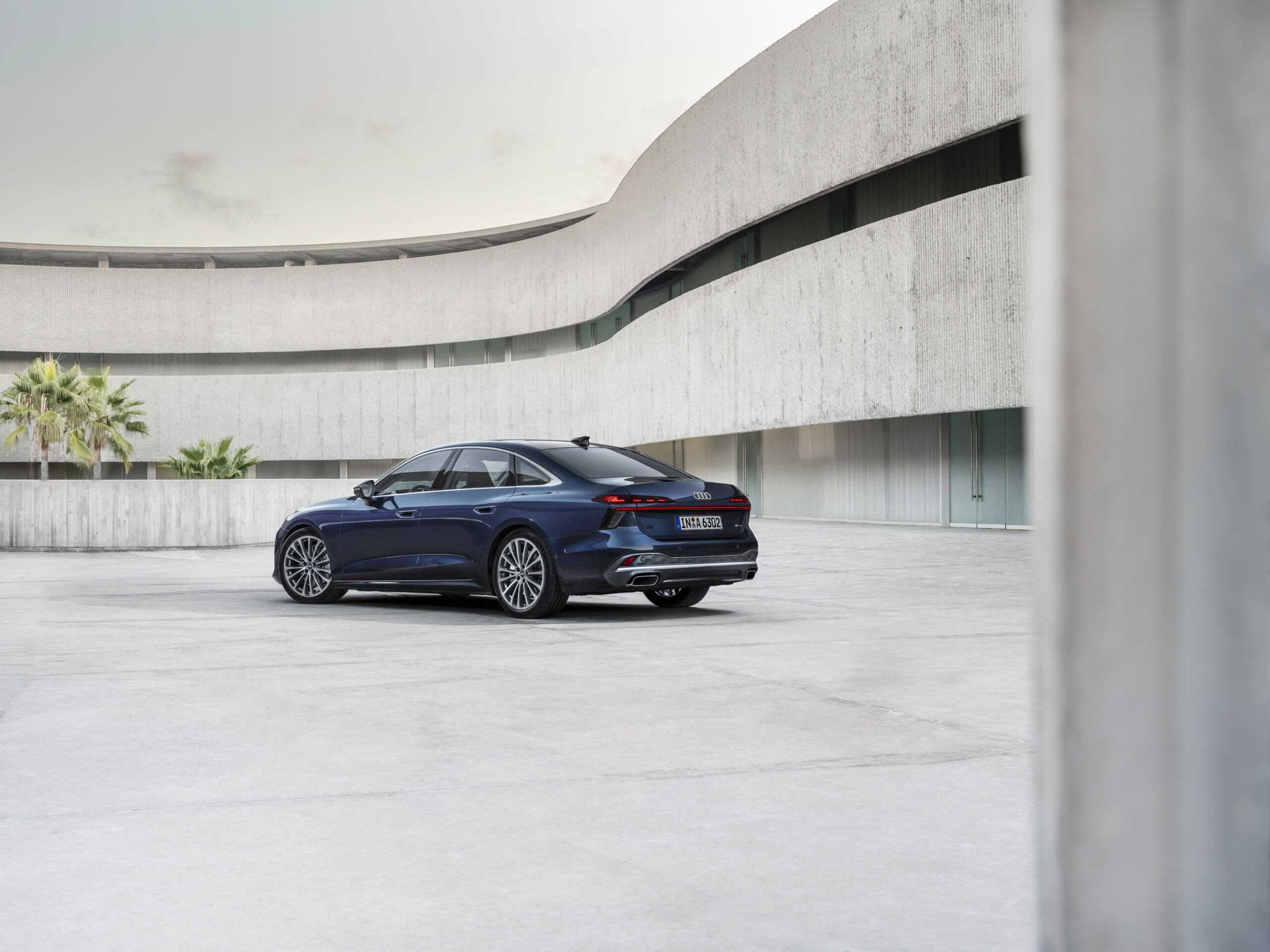 Like the front end, the elongated and slightly upward-sloping rear end also conveys prestige. The two rear lights with their precise graphics and the continuous light strip lend the new A6 Sedan a sense of presence, as does the vertical brake light.