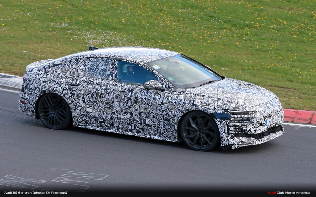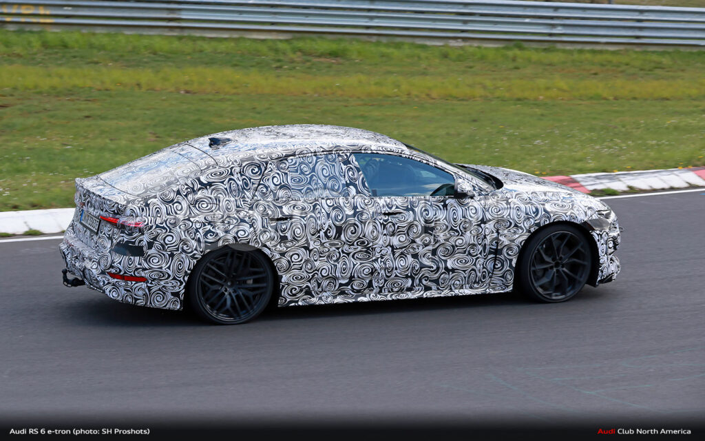 It’s test week at the Nürburgring and our spy photographers have caught the Sportback variant of the upcoming PPE-based RS 6 e-tron out lap testing. This isn’t the first time the RS 6 e-tron has been spotted, but it is the first time we’ve seen it turning laps on an industry test day.