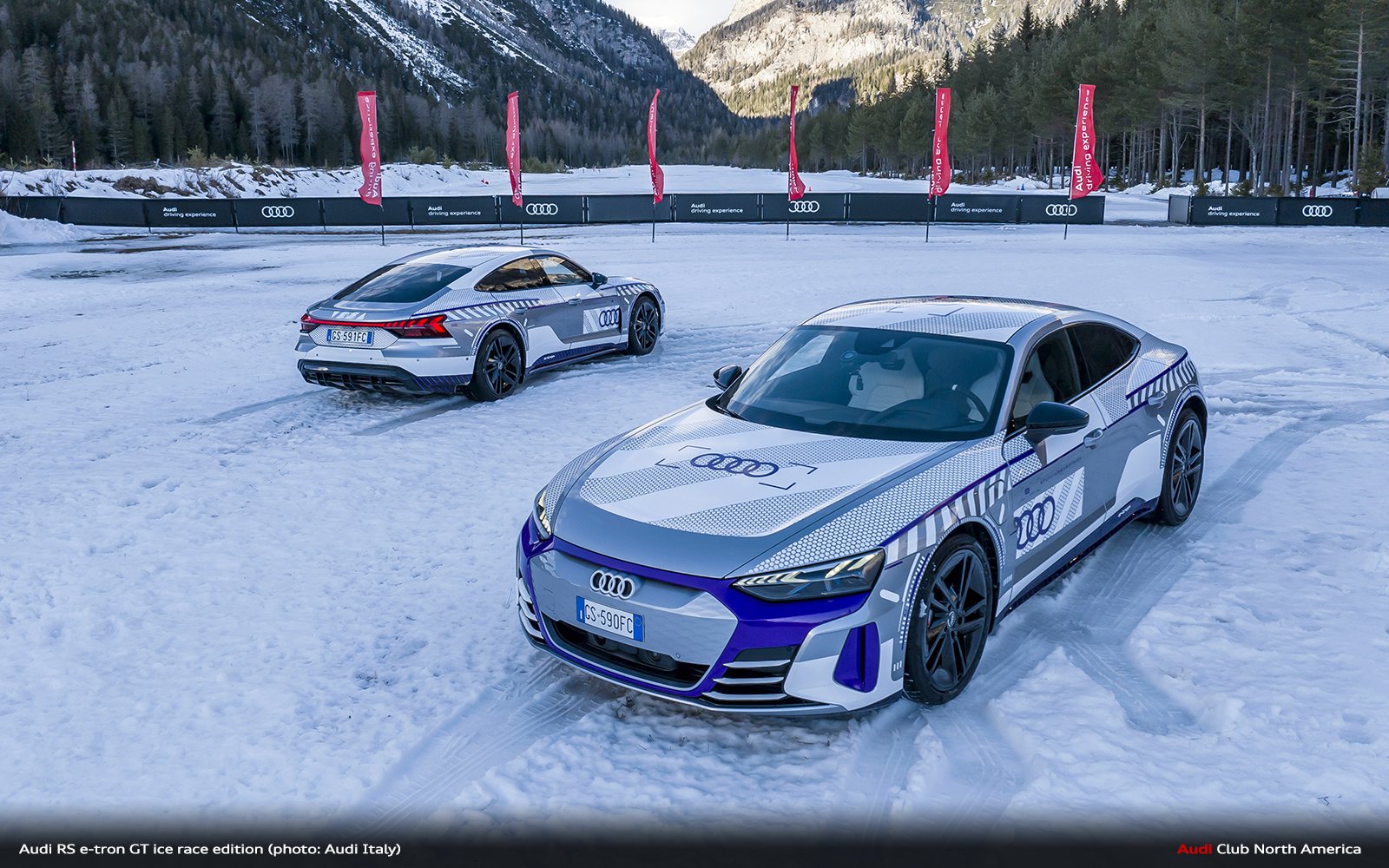 • Audi Italia chooses Cortina again for an Italian preview: the special edition Audi RS e-tron GT ice race edition exhibited in the central Piazza Roma
