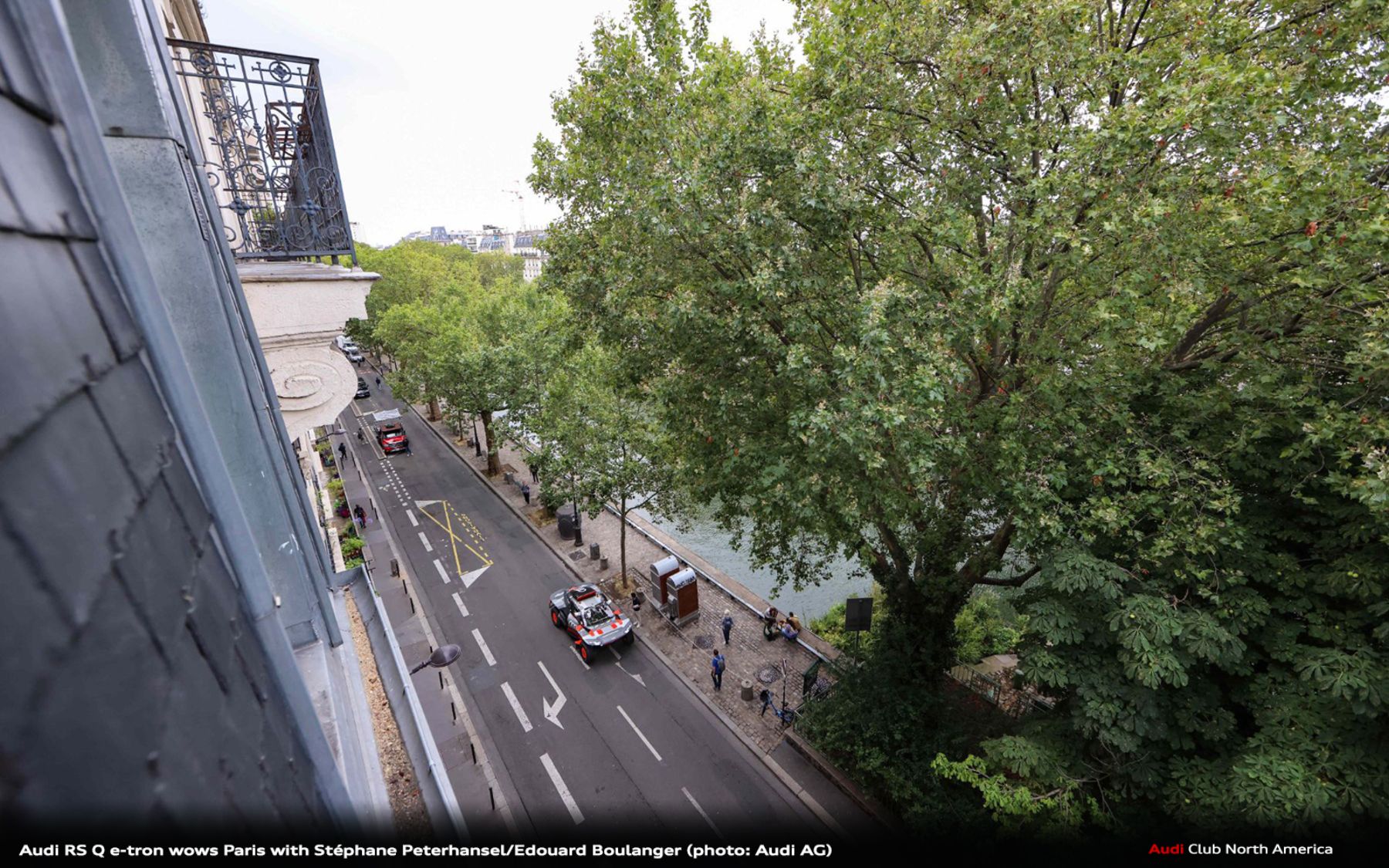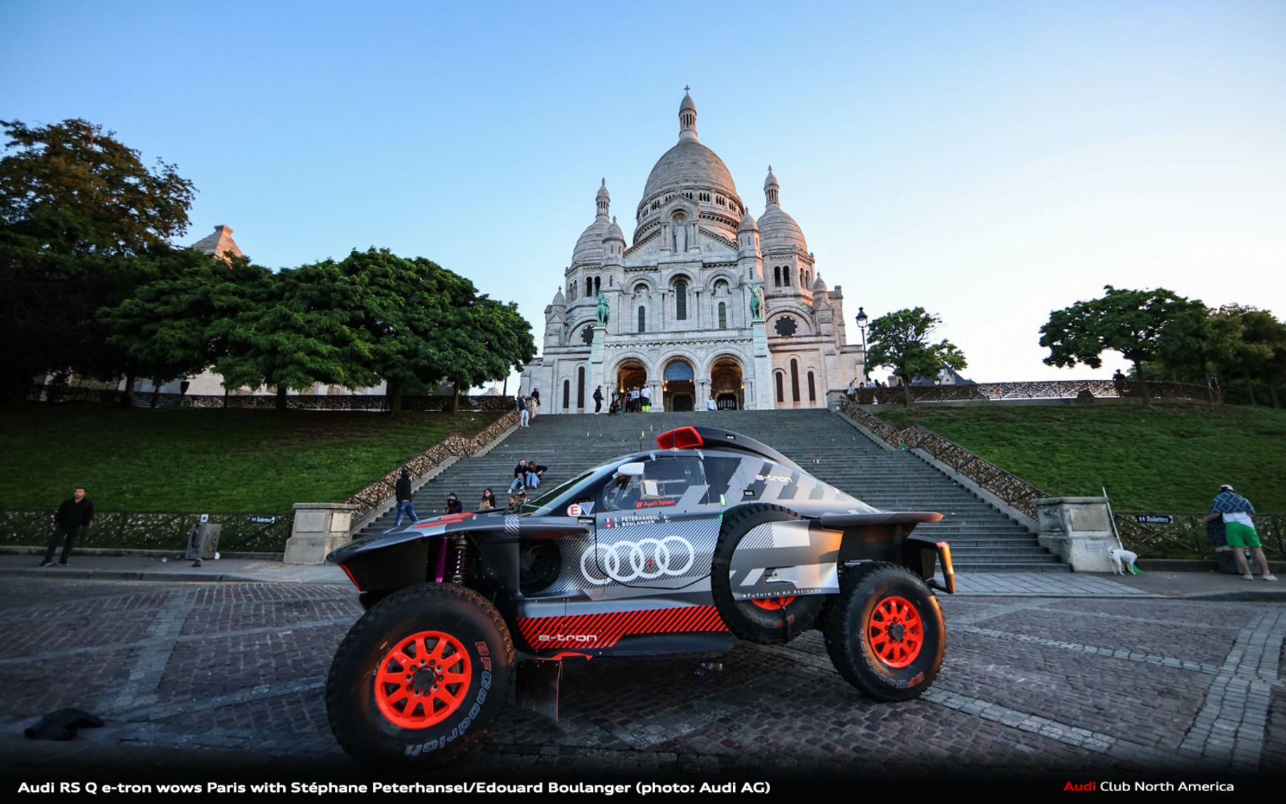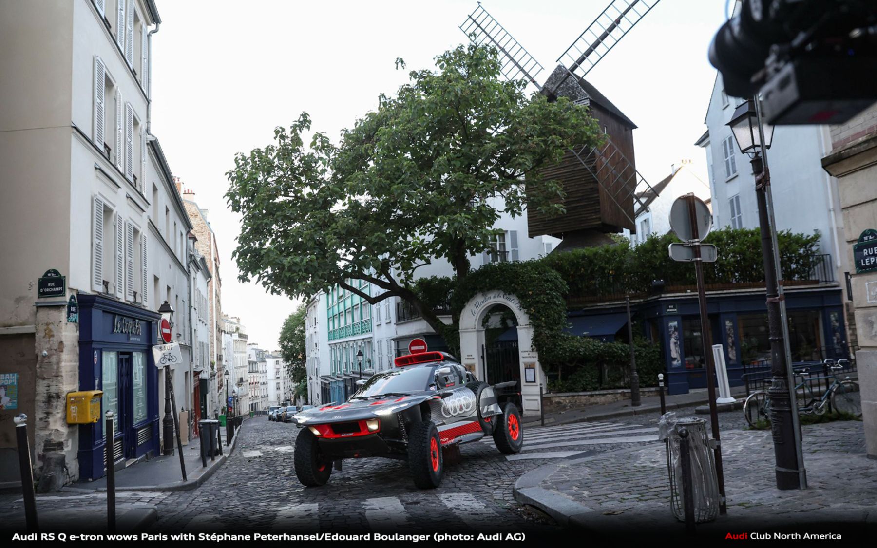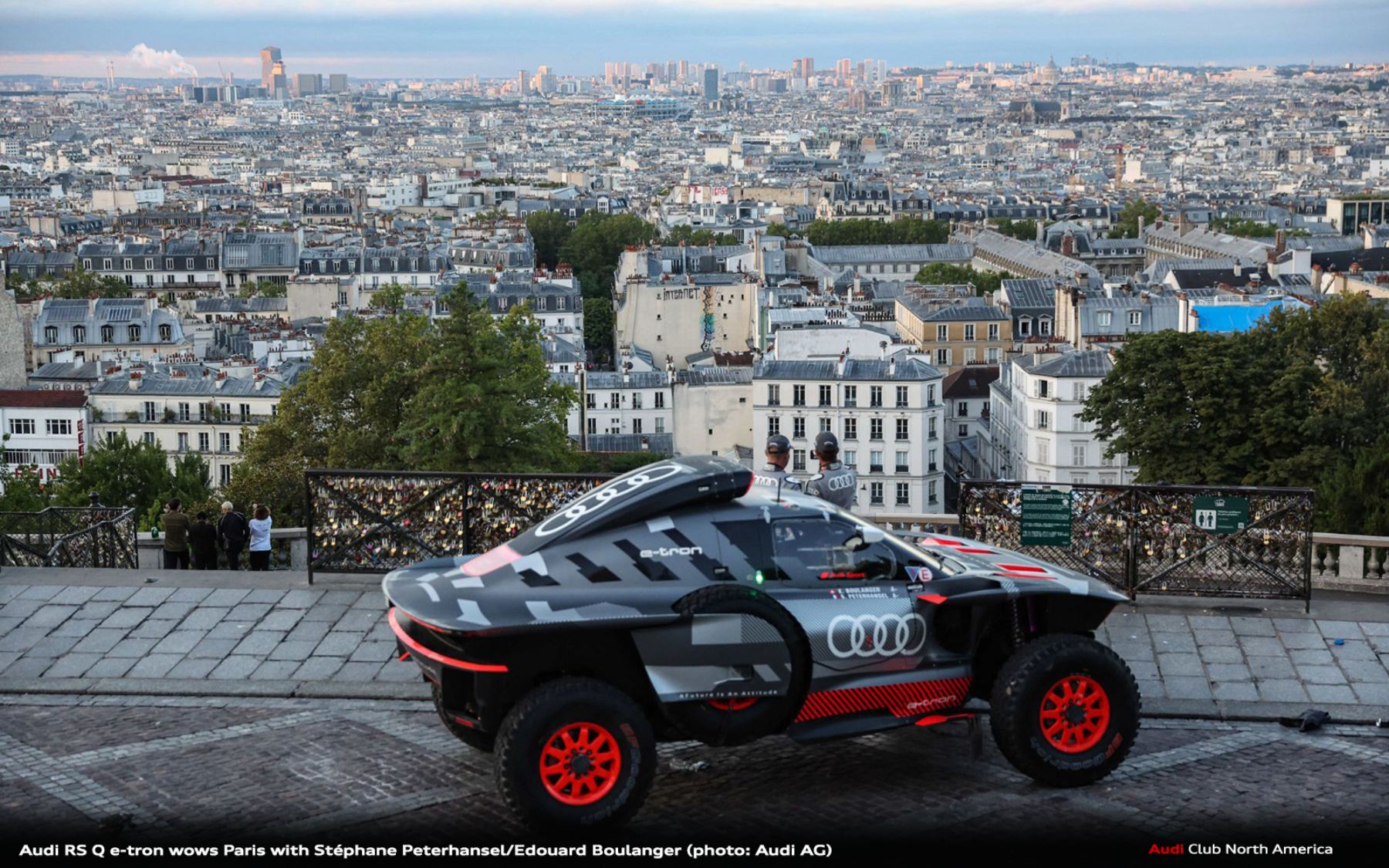 The tour began above the rooftops of Paris: At the Sacré-Cœur Basilica on Montmartre Hill, 14-time Dakar winner Stéphane Peterhansel and his co-driver Edouard Boulanger looked down on the capital below them. From the 18th Arondissement they passed the Église de la Madeleine to the Place de la Concorde, the headquarters of the Automobile Club de France. Via the Champs-Elysées, the RS Q e-tron with its 263 kW (358 hp) electric drive set its sights on the Arc de Triomphe. The tour then led past the Invalides to Place François 1er, where the prototype drifted in typical rally style. From there it went to the origins of the Dakar Rally: At the Place du Trocadéro Stéphane Peterhansel and Edouard Boulanger looked up at the Eiffel Tower. The first participants gathered there as early as 1979 for the start of the world’s toughest desert rally. Along the banks of the Seine the two Audi factory drivers ended their tour with atmospheric pictures. “It was great fun to explore Paris with our RS Q e-tron,” admitted Stéphane Peterhansel. “With the electric drive we rolled almost silently through this wonderful city and inspired many people.”