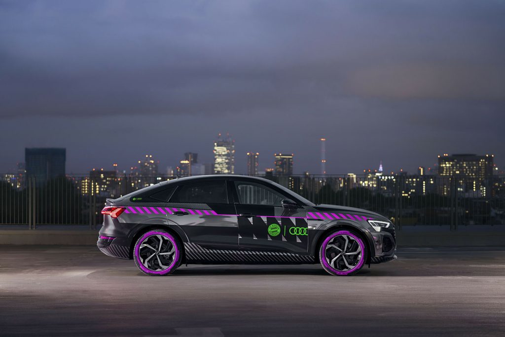 The Audi Q8 e-tron with the design of the new FC Bayern away jersey