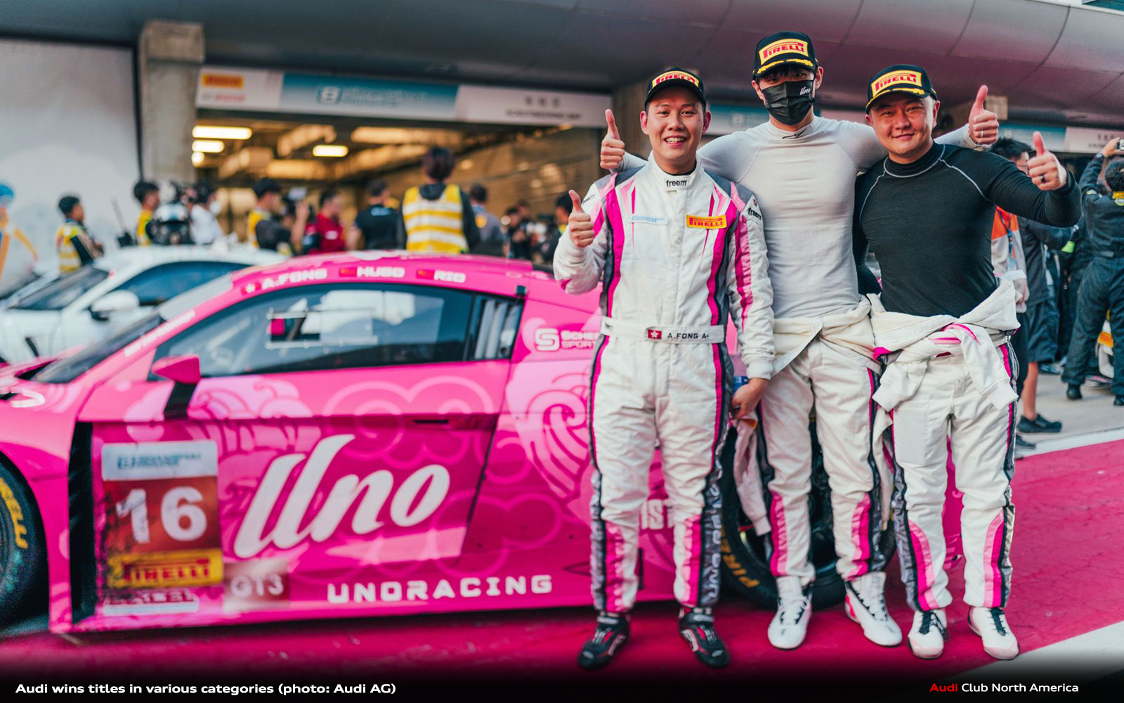 Podium result in an 8 Hour race: The UNO Racing Team clinched a podium finish at the Shanghai 8 Hours with the Audi R8 LMS. Adderly Fong from Hong Kong and his Chinese teammates Rio and Hu Bo secured second place after a strong final sprint. Fong started the final part of the race in third place with a gap of 18 seconds and still improved to second position. Hu Bo has thus managed a step forward in the Audi Sport Asia Trophy for privateers: He is the new runner-up behind leader of the standings Andrew Haryanto.