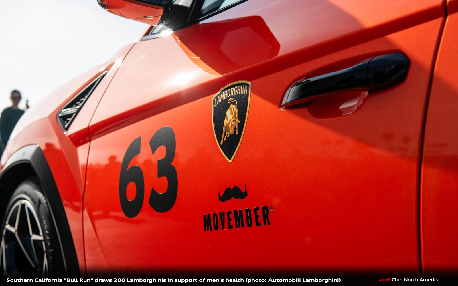 “It’s an honor to actively contribute to raising awareness and funds for Movember and promoting prevention for men’s health,” remarked Stephan Winkelmann. “This Southern California “Bull Run” saw the most Lamborghinis ever come together in the history of this region, and for such an important, vital cause that touches so many of us in different ways. With California as the leading market in the US, it was wonderful to witness such strong customer participation in this event.”