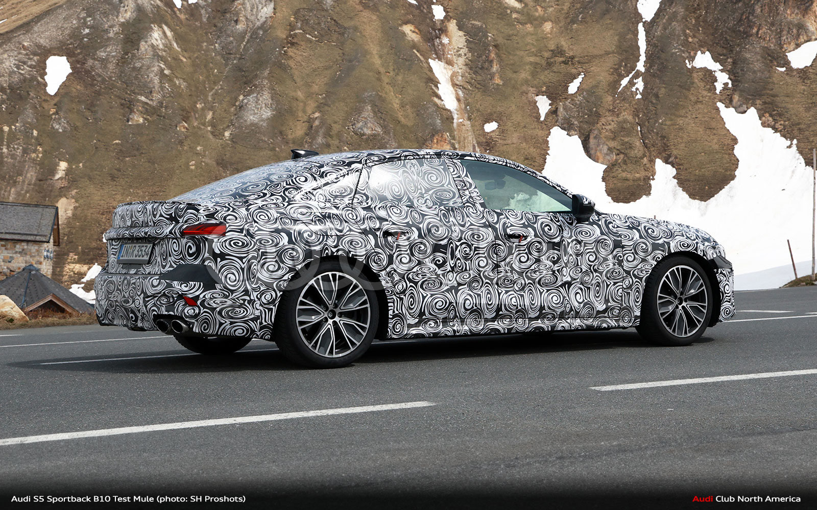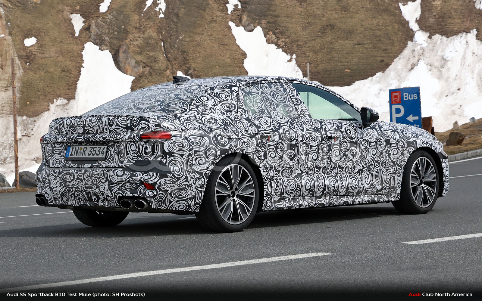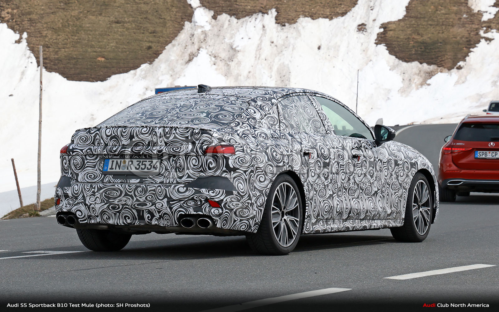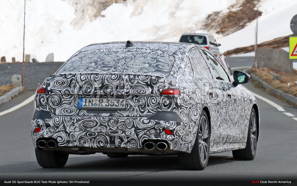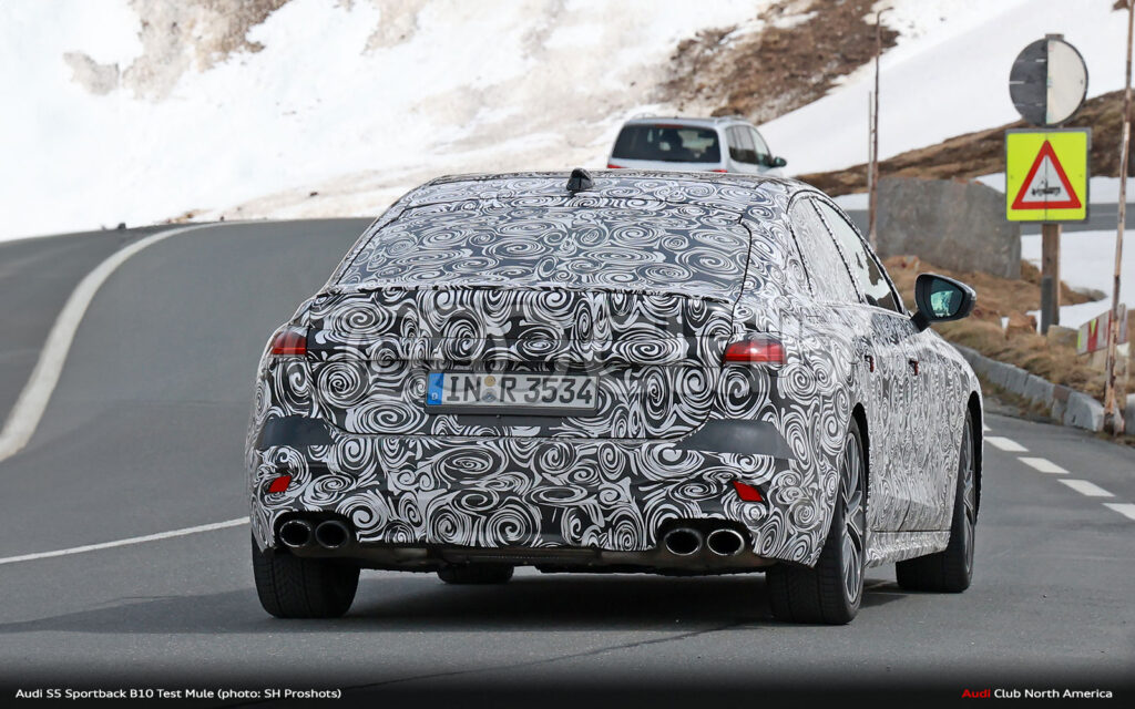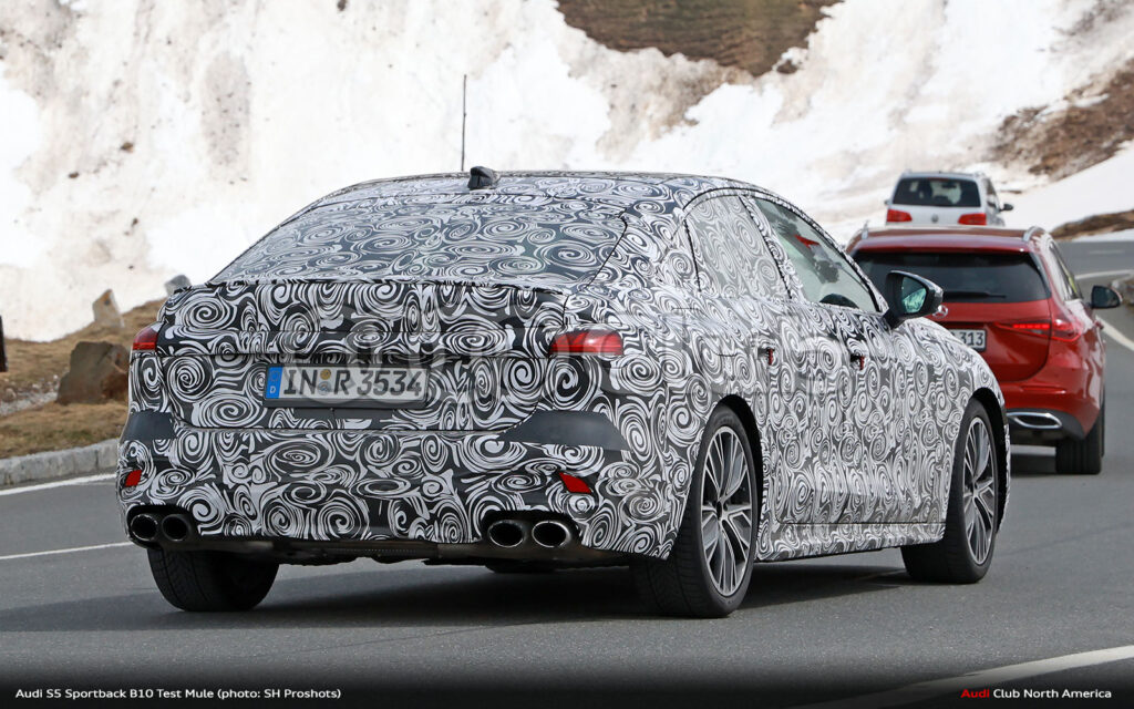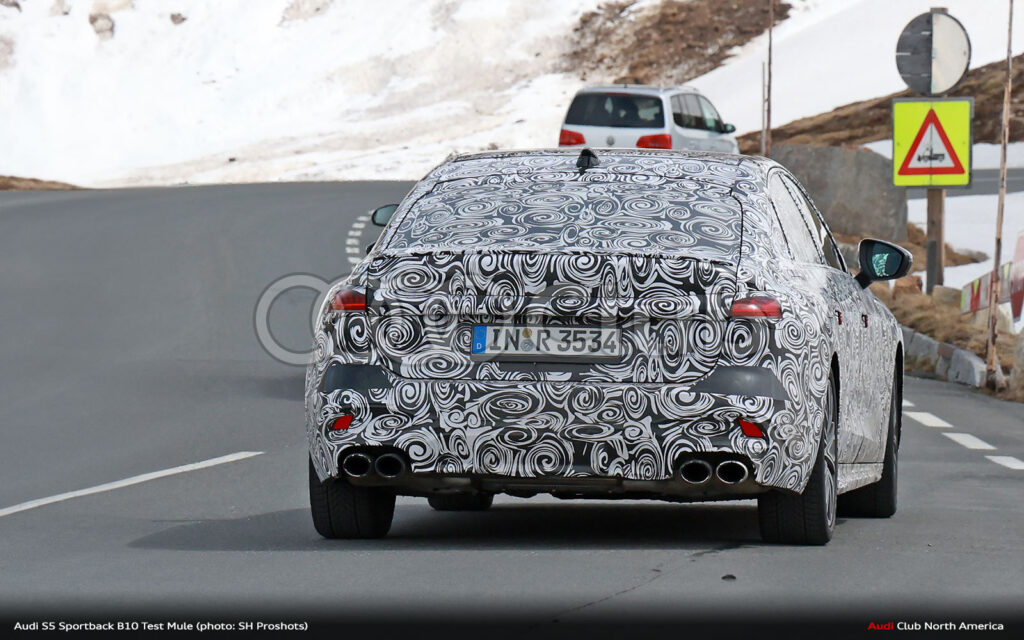 So far, most of the B10 Sportback prototypes seen have had basically the same spec, except some having quad exhaust tips that were likely S5s as well. In this case though, what we see under the camoflauge is what appears to be a more production bumper design that is more sporty, not to mention the grille that wears the new S-car spec lattice work.