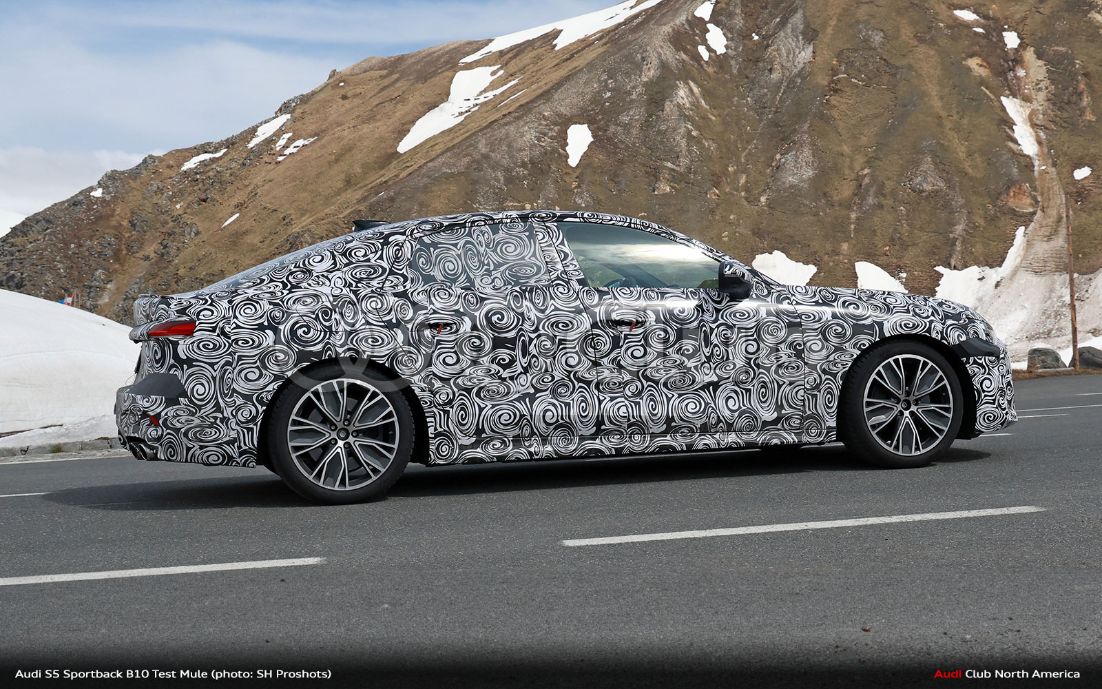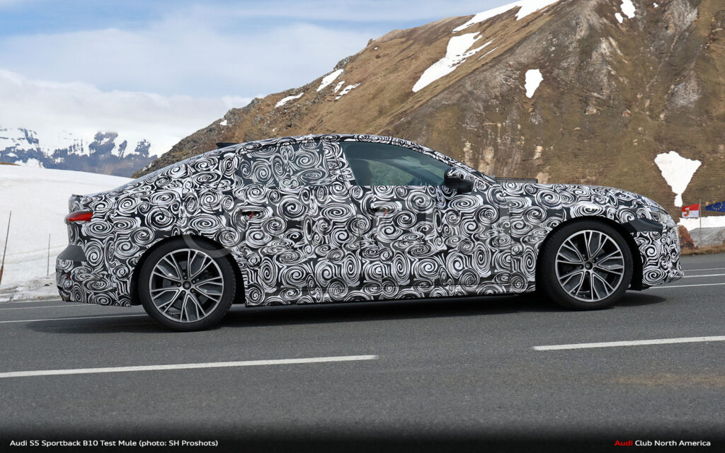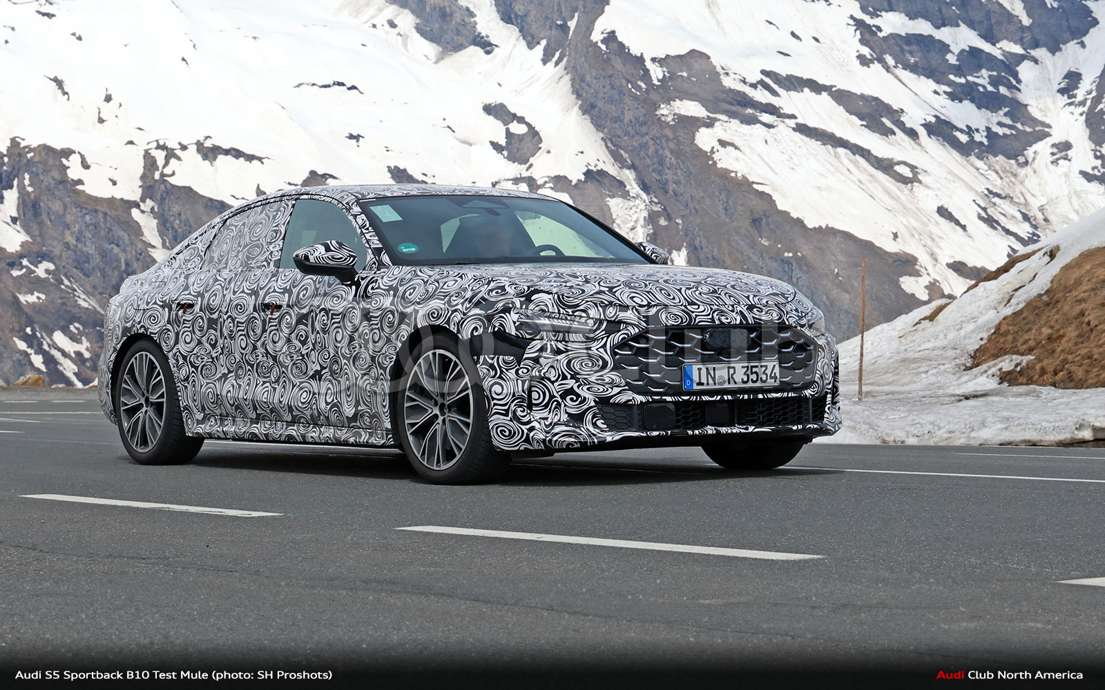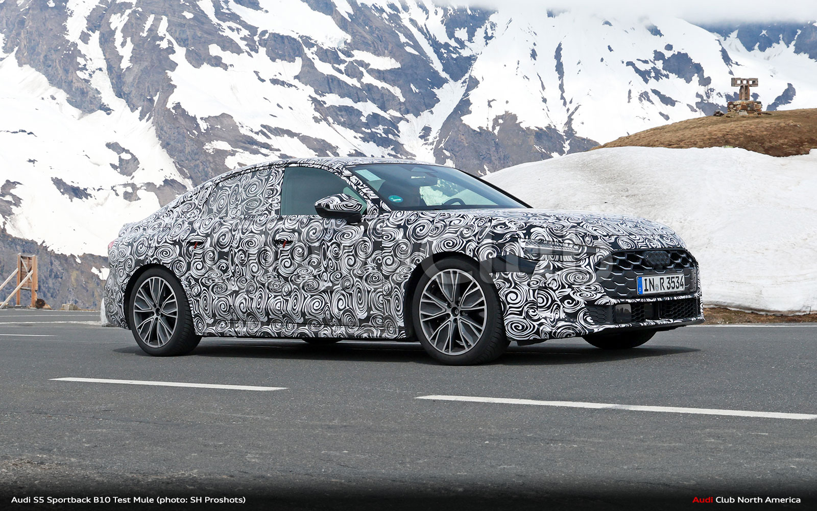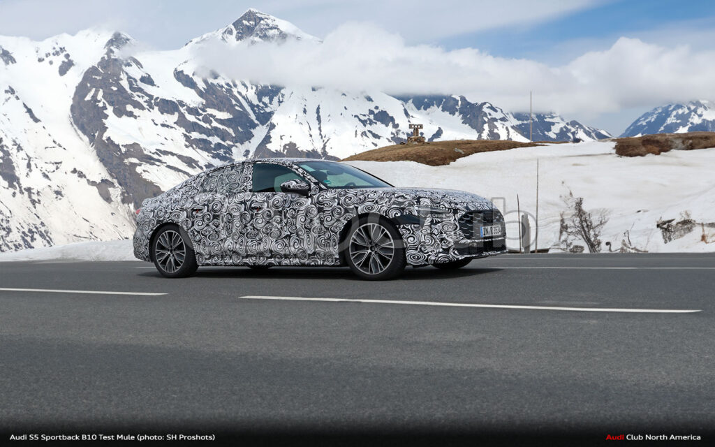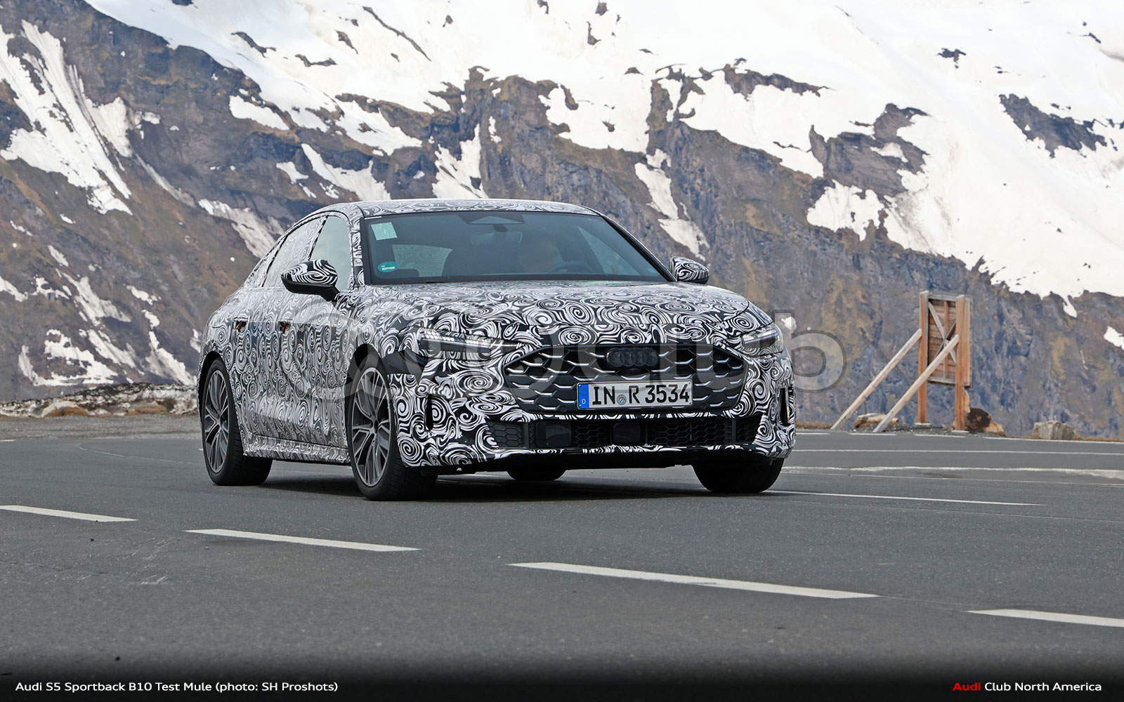 So far, most of the B10 Sportback prototypes seen have had basically the same spec, except some having quad exhaust tips that were likely S5s as well. In this case though, what we see under the camoflauge is what appears to be a more production bumper design that is more sporty, not to mention the grille that wears the new S-car spec lattice work.
