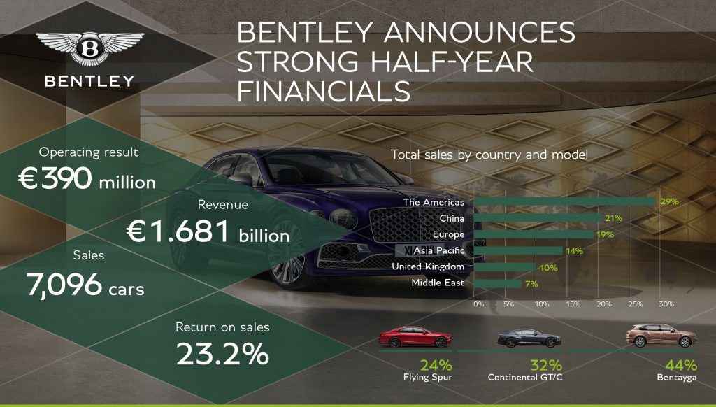Bentley Motors today announced encouraging financial results for the first six months of 2023, however warned of more difficult trading conditions to follow. The luxury British marque posted operating profits of €390 million, slightly down on the same period last year, a two per cent drop from €398 million.