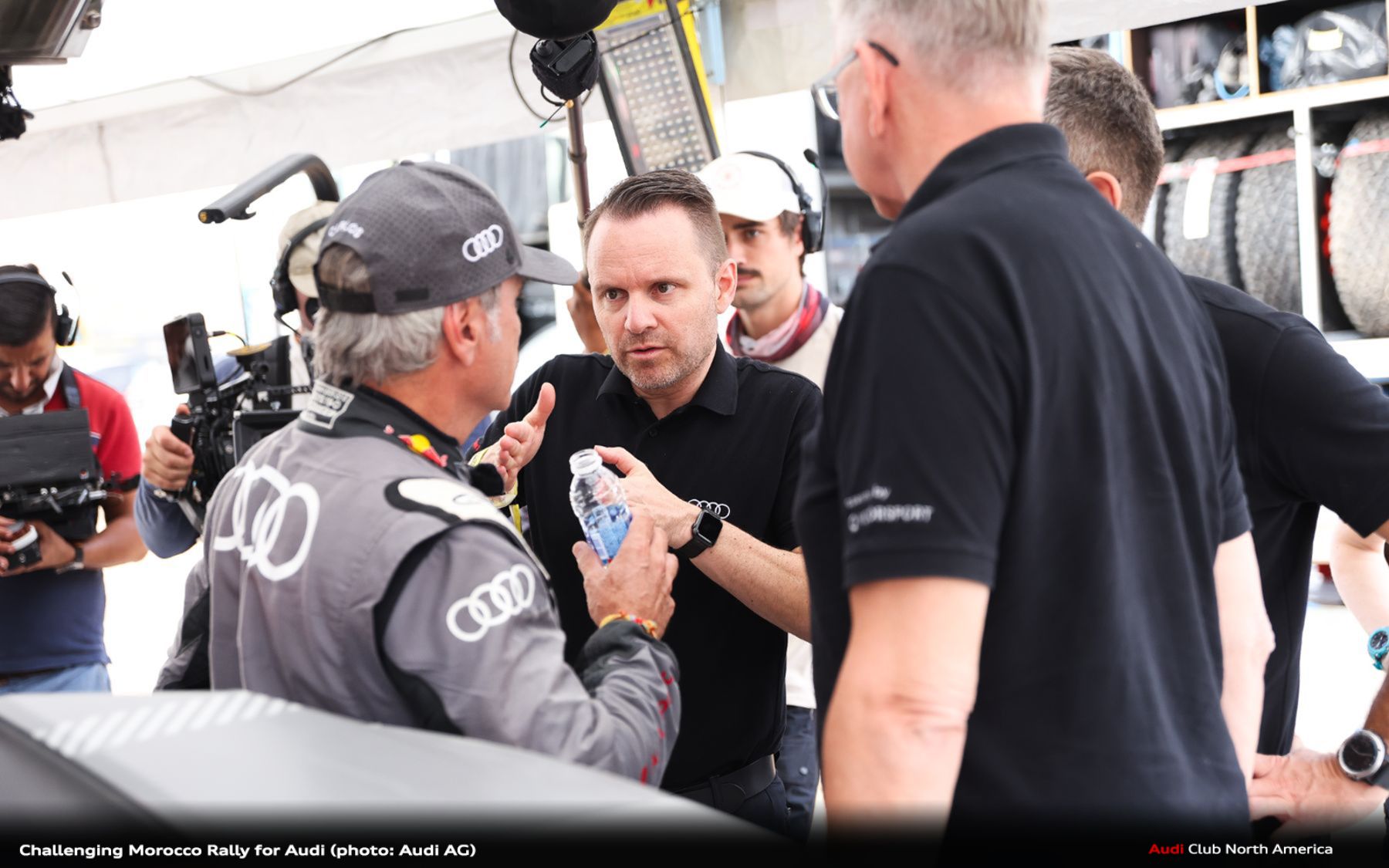 Team Audi Sport received no reward for a strong recovery at the Morocco Rally: Stéphane Peterhansel and co-driver Edouard Boulanger had improved from sixth place to second position on the penultimate day. However, a failure of the water pump on the final day deprived the two French Audi Sport drivers of the chance of a top result. The two other Audi driver pairings Mattias Ekström/Emil Bergkvist and Carlos Sainz/Lucas Cruz also experienced ups and downs during the more than 2,200-kilometer desert rally.