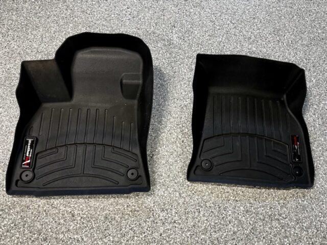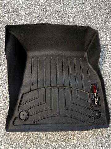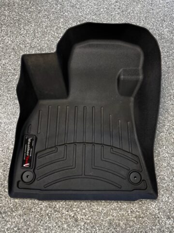 The WeatherTech FloorLiner lines the interior carpet up the front, back and even up the sides of the 2019-23 Audi e-tron’s footwell