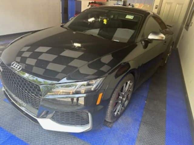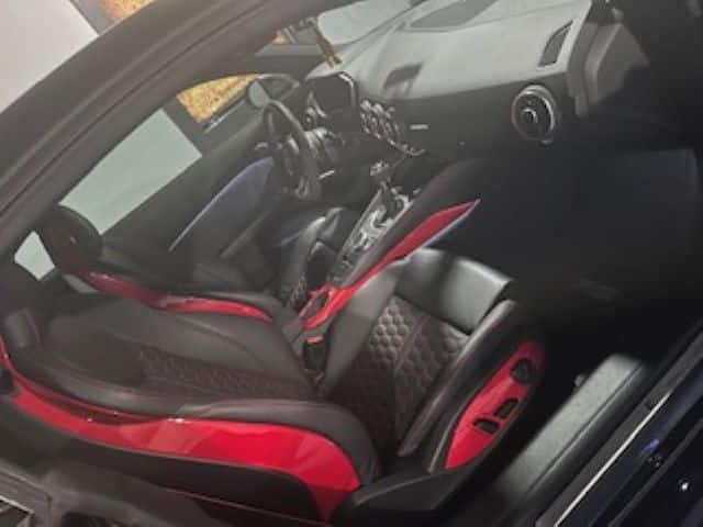 2019 TTRS Mythos Black metallic over black leather interior with red stitching and highlights, very low mileage of 10,100, magnetic suspension, climate controlled garage kept, never driven in snow. Original owner with Audi care dealer maintenance, all windows are tinted including a clear heat shield tint for front windshield, full frontal PPF including pillars, headlights, front and rear fenders, and hood, and entire car ceramic coated. Car has been meticulously kept, Interior is immaculate, owner is non-smoker and no one has ever eaten or drank in vehicle. Car includes a professionally installed Blackvue front and rear recording dashcam camera system with hidden wiring and power, two OEM keys, all service completed.