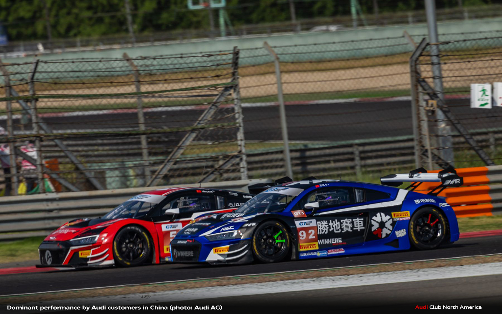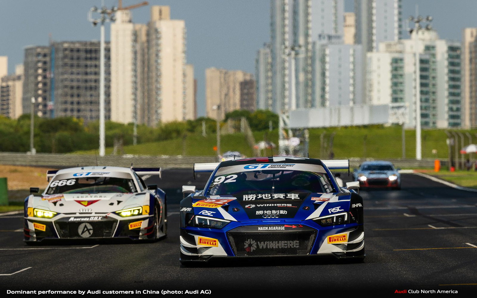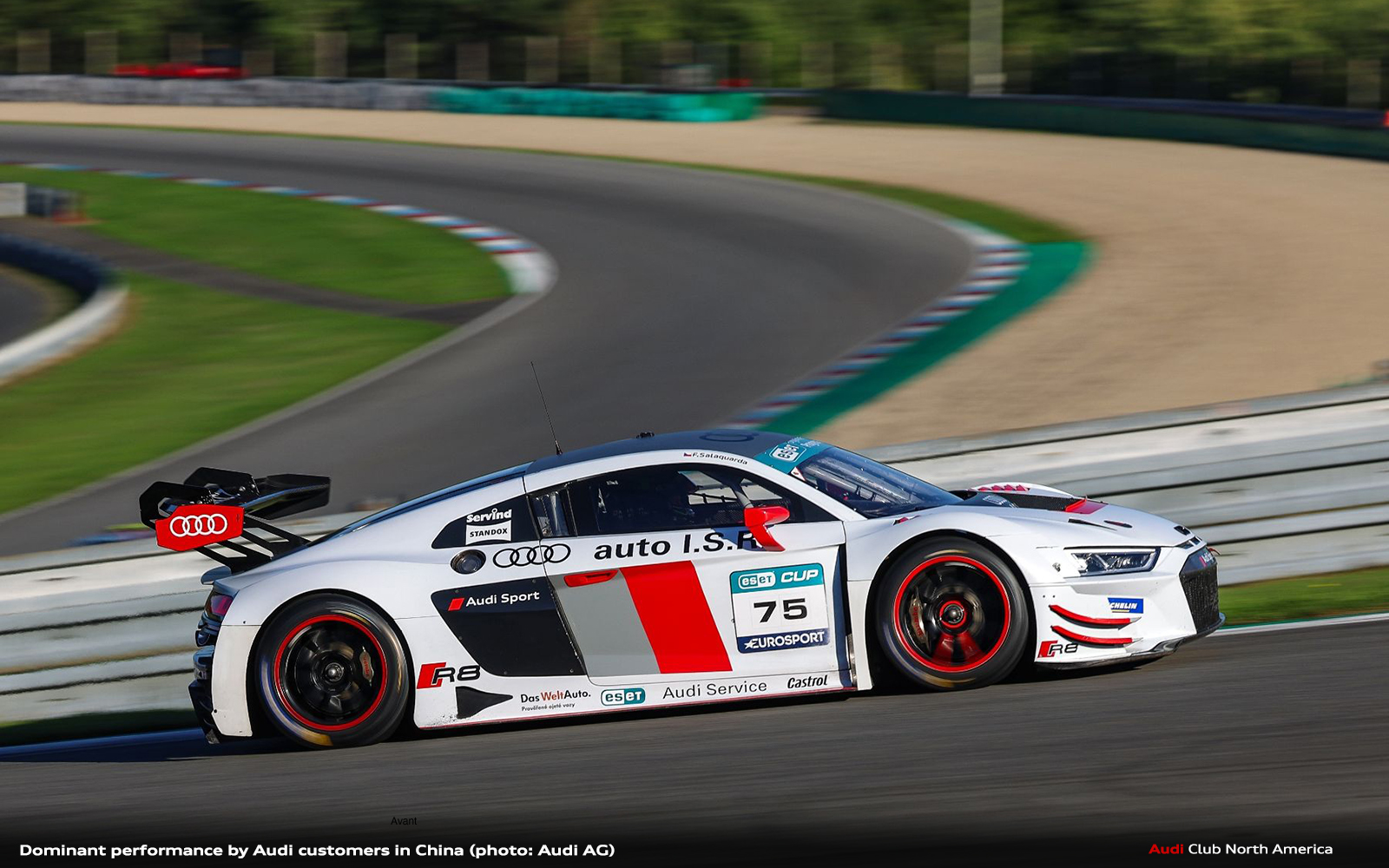 Two wins on debut: Andy Deng managed a perfect debut in GT3 racing in the Chinese GT Super Sprint Challenge. At the fourth round of the series on the Shanghai circuit, the driver of Team Winhere by HAR secured pole position in the Audi R8 LMS. He stayed in front at the start and built up a lead of 25.319 seconds over the course of 14 laps. Hu Bo, who started from third place, was initially third in the Audi R8 LMS of Team Absolute Racing and defended against overtaking attempts by a chaser. The Audi privateer moved up to second when a car in front dropped back. He managed to maintain second place with a 0.14-second advantage to the finish. Andy Deng started the second race from pole position as well. With the two Absolute Racing drivers Vincent Lin and Hu Bo in second and third place, an Audi trio had secured the best starting positions. Lin initially took the lead at the start but Andy Deng overtook the car in front again. This time he built up a 21.6-second lead to the finish. Vincent Lin finished second while Hu Bo completed an Audi one-two-three. Hu Bo thus moved up to second place behind Andrew Haryanto in the Audi Sport Asia Trophy for privateers.