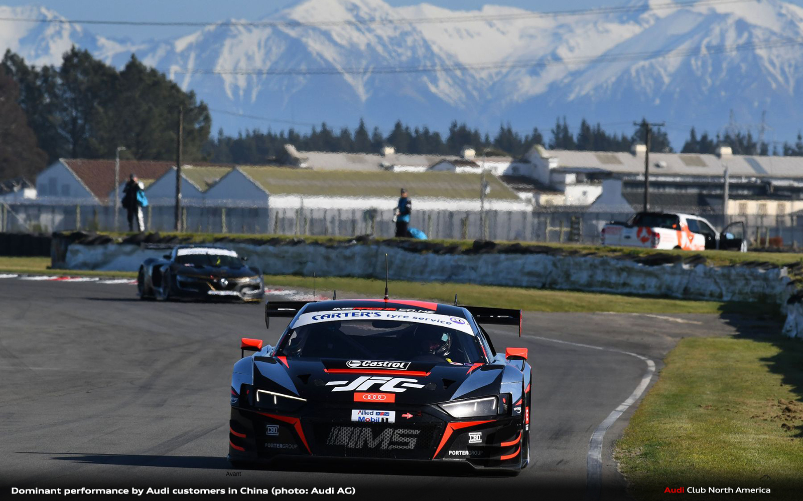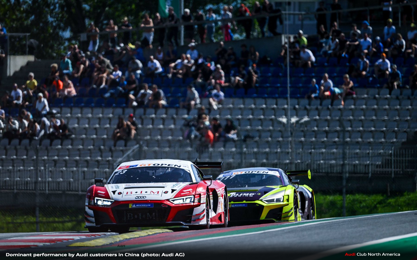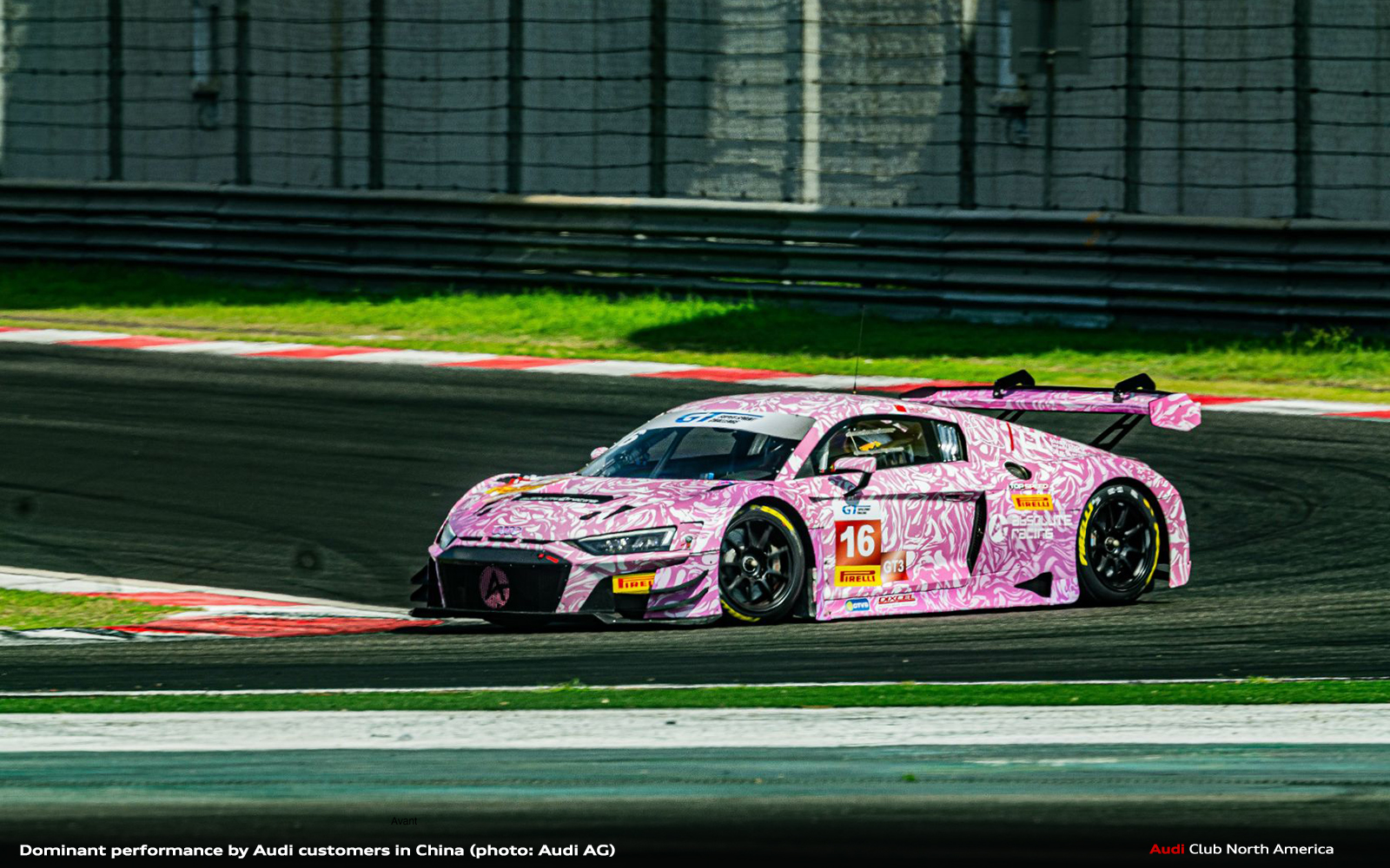 Two wins on debut: Andy Deng managed a perfect debut in GT3 racing in the Chinese GT Super Sprint Challenge. At the fourth round of the series on the Shanghai circuit, the driver of Team Winhere by HAR secured pole position in the Audi R8 LMS. He stayed in front at the start and built up a lead of 25.319 seconds over the course of 14 laps. Hu Bo, who started from third place, was initially third in the Audi R8 LMS of Team Absolute Racing and defended against overtaking attempts by a chaser. The Audi privateer moved up to second when a car in front dropped back. He managed to maintain second place with a 0.14-second advantage to the finish. Andy Deng started the second race from pole position as well. With the two Absolute Racing drivers Vincent Lin and Hu Bo in second and third place, an Audi trio had secured the best starting positions. Lin initially took the lead at the start but Andy Deng overtook the car in front again. This time he built up a 21.6-second lead to the finish. Vincent Lin finished second while Hu Bo completed an Audi one-two-three. Hu Bo thus moved up to second place behind Andrew Haryanto in the Audi Sport Asia Trophy for privateers.