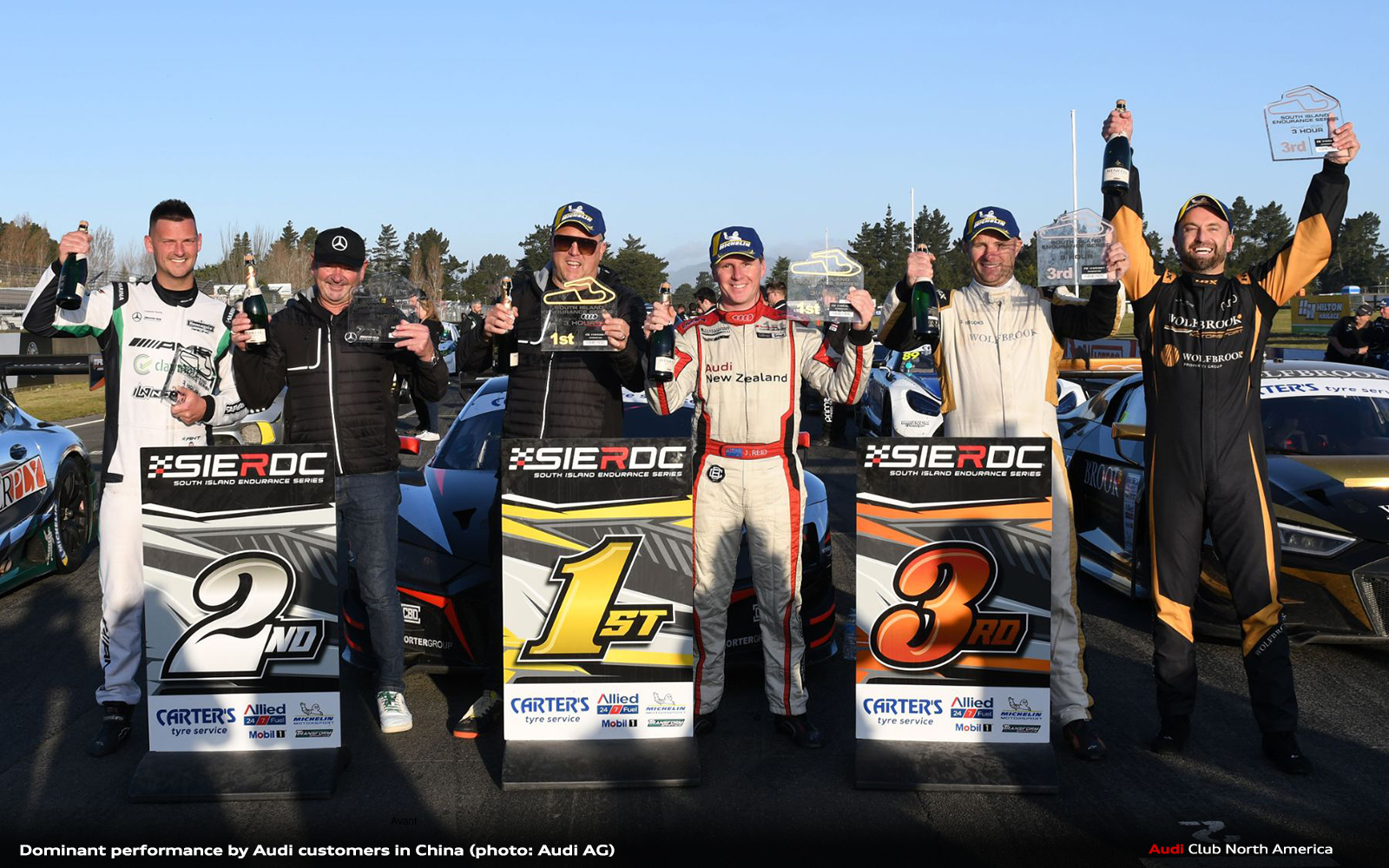 Third victory in a row: Sam Fillmore and Jonny Reid remained unbeaten in the New Zealand Endurance Championship for the third time in the 2023 season. On the Ruapuna circuit on the South Island, the two New Zealanders in the Audi R8 LMS from IMS Motorsport won a thrilling three-hour race. Just 2.8 seconds separated them from Ant and Paul Pedersen in a Mercedes-AMG. Third place went to Steve Brooks/Bill Riding, who also drove an Audi R8 LMS like the winners. The same event also featured a one-hour race in which Adam Julian in an Audi R8 LMS scored another podium result with third place.